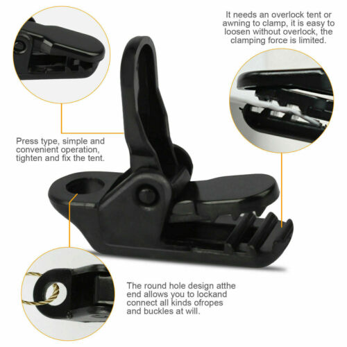4. Needs a overlocking tents or awning to clamp, easy to loosen without overlock, clamping force is limited, not fixed clamp.