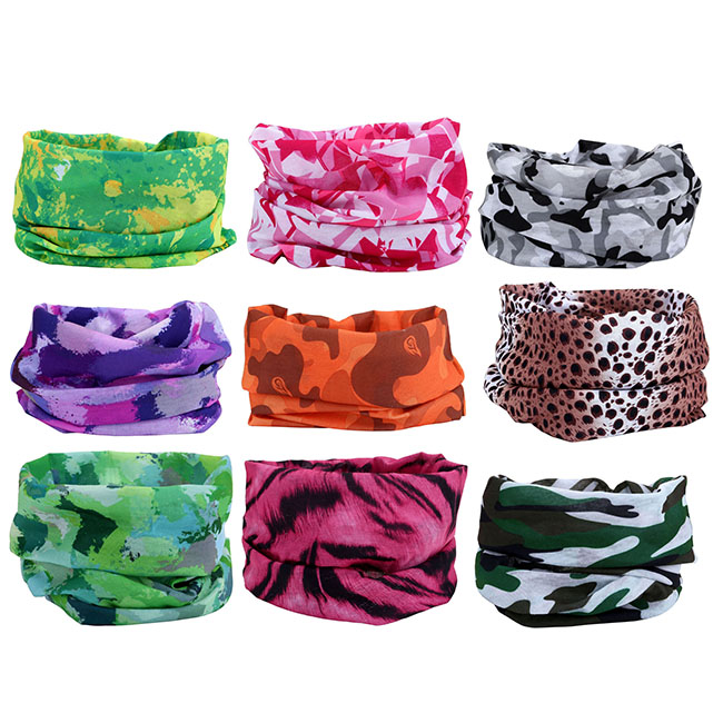 1. 聚酯纤维制成,轻薄透气,富有弹性。 2. 无刺激气味或有害成分。通用尺码。适合成人和小孩。 3. 无缝不封边设计,多重用途:海盗帽、四季帽、头绳、护腕、眼罩、抹胸、毛巾、厨巾、全包头巾、汗巾、手机套、浴帽、面巾、迷你短裙(适合纤瘦的女孩子) 4. 防风、防晒、排汗。适合户外运动使用,如摩托车、全地形车越野、登山、徒步、自行车、跑步、轮滑、滑板、钓鱼、航海、滑雪、溜冰。 5. 请手洗,自然风干。切勿机洗或者熨烫,以免损伤纤维,影响弹性。
