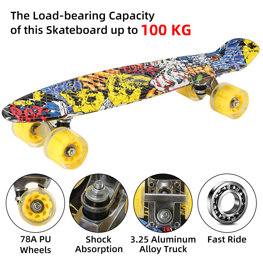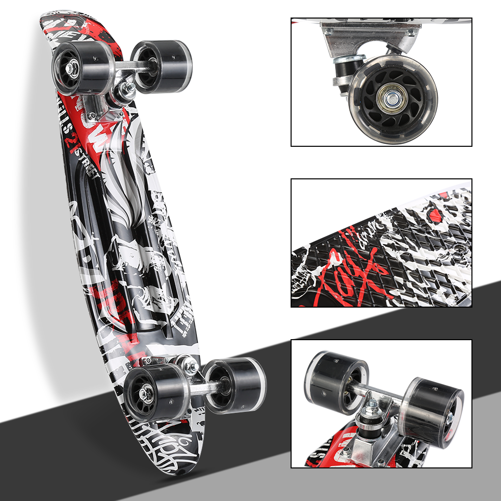 儿童四轮滑板小鱼板带字形扳手工具 闪光轮