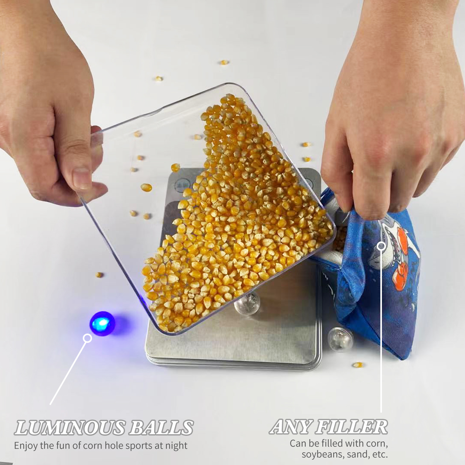 LIGHT AND EASY TO CARRY--It has invisible zipper no filling material, which allows you to freely fill corn, soybeans, and even used Cornhole Bags liners without affect professional tossing.