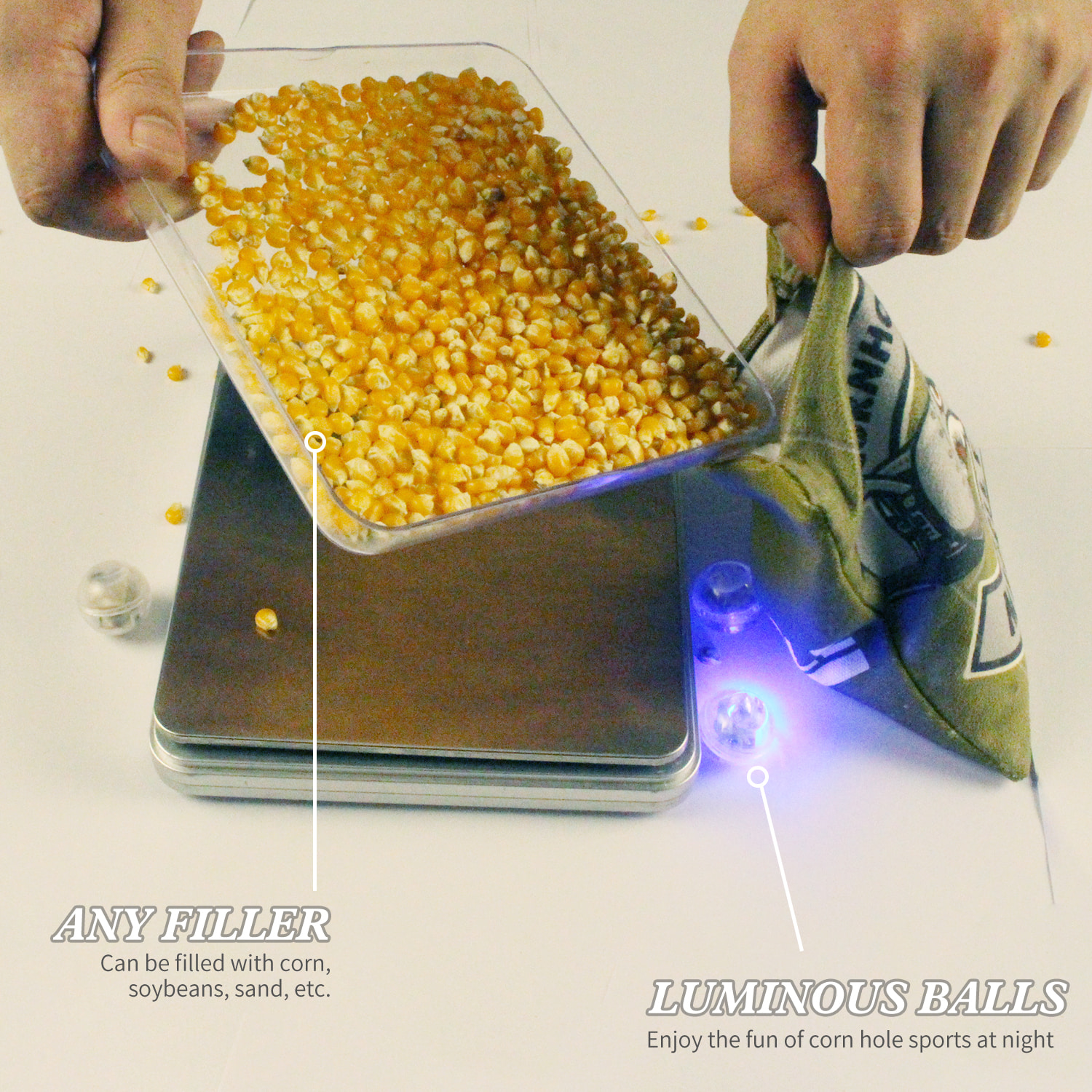 LIGHT AND EASY TO CARRY--It has invisible zipper no filling material, which allows you to freely fill corn, soybeans, and even used Cornhole Bags liners without affect professional tossing.