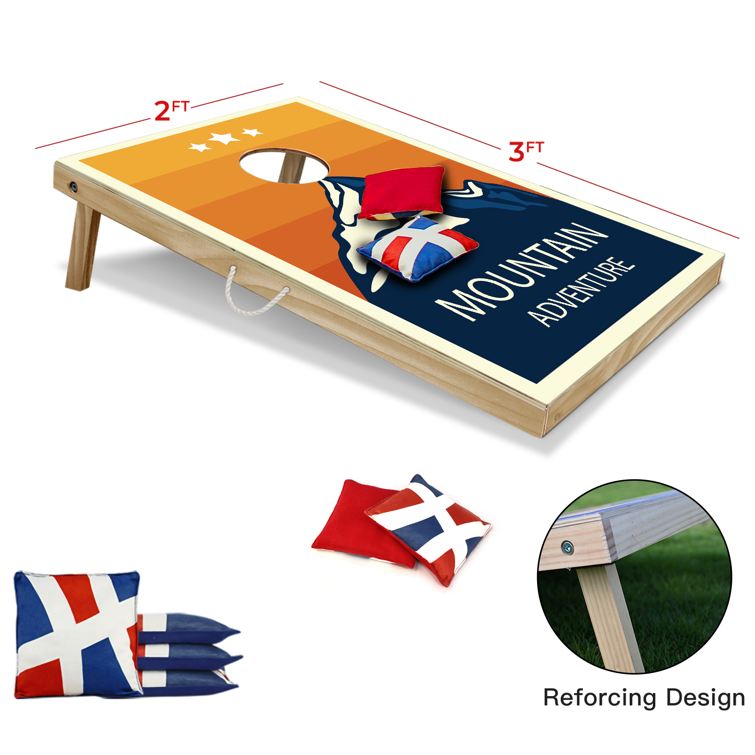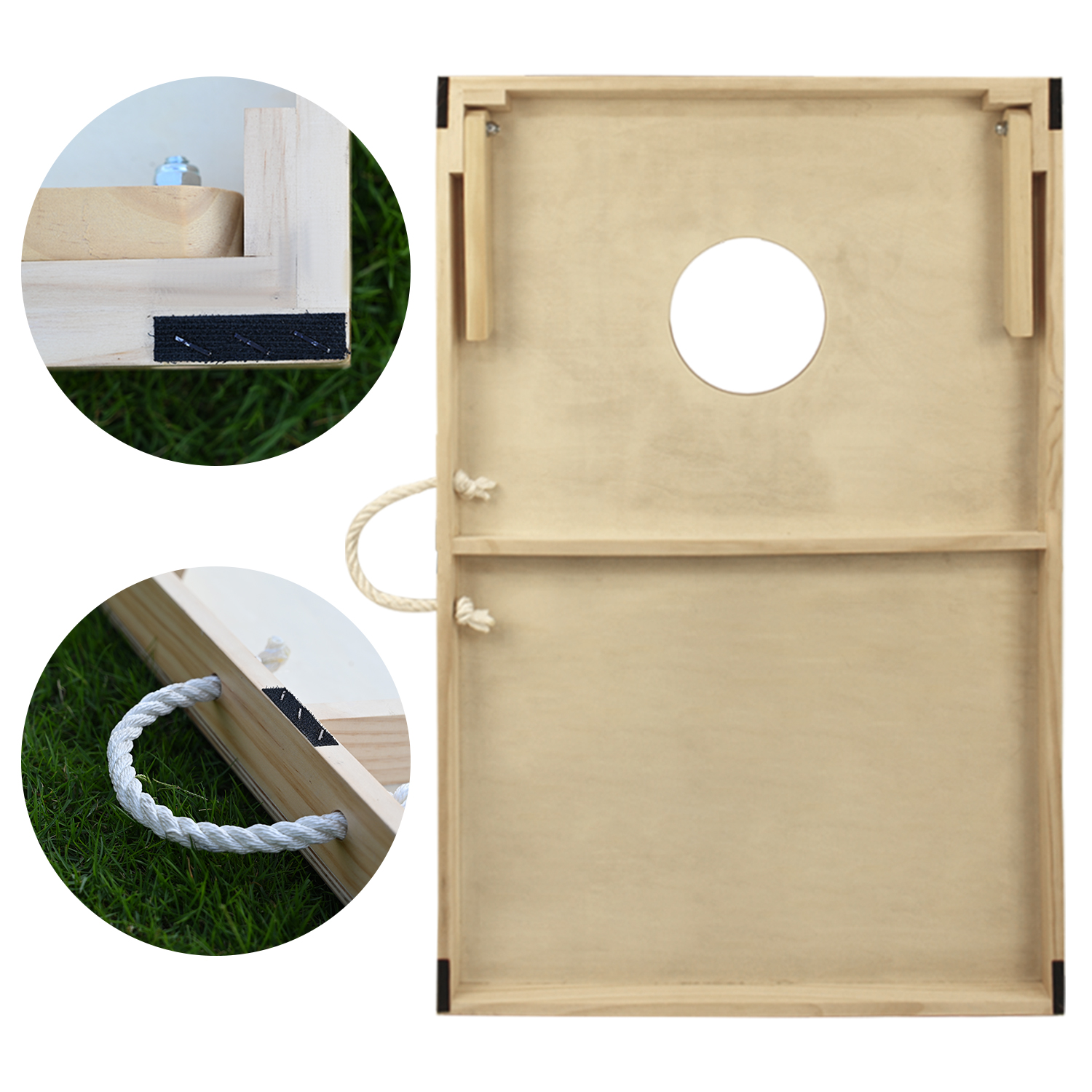 EASY AND CONVEINVENT TO MOVE: foldable legs, velcro on each corner and hemp rope handle, make it easy and quick to put two piece boards together for convenient storage and transportation.
