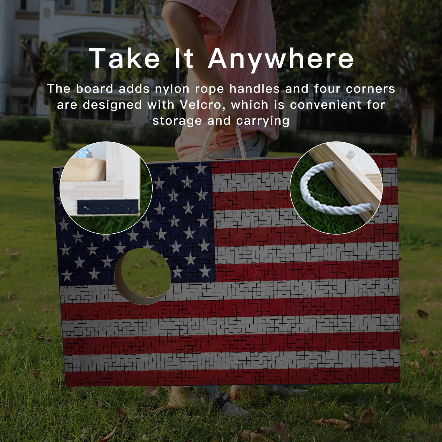 EASY AND CONVEINVENT TO MOVE: foldable legs, velcro on each corner and hemp rope handle, make it easy and quick to put two piece boards together for convenient storage and transportation.