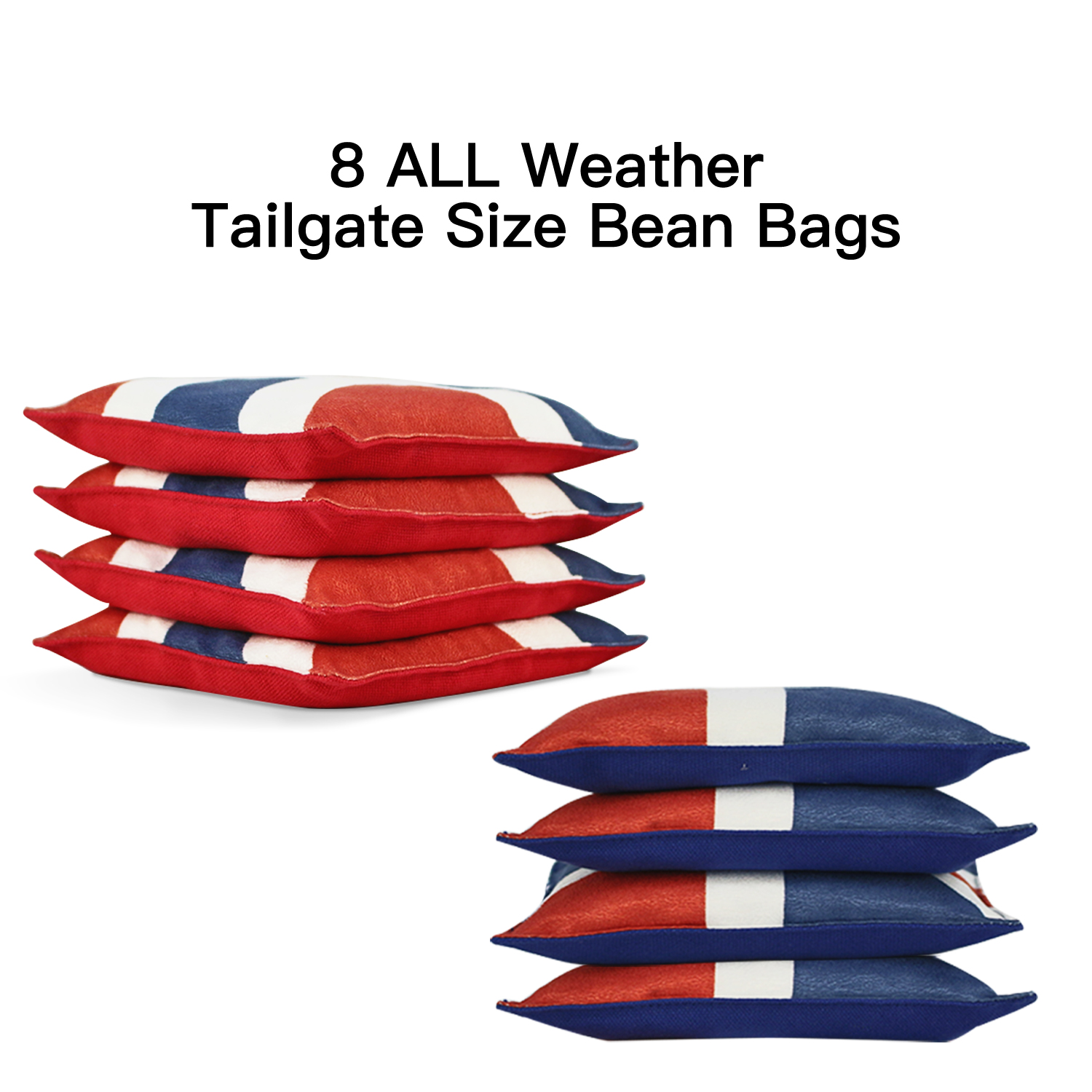 STRONG AND STANDARD BEAN BAGS: Premium duck canvas and microfiber suede make 8 bean bags no fear for all weather, inside resin pellets has no smell, regulation size and weight – 6” x 6” and 15 ounces each
