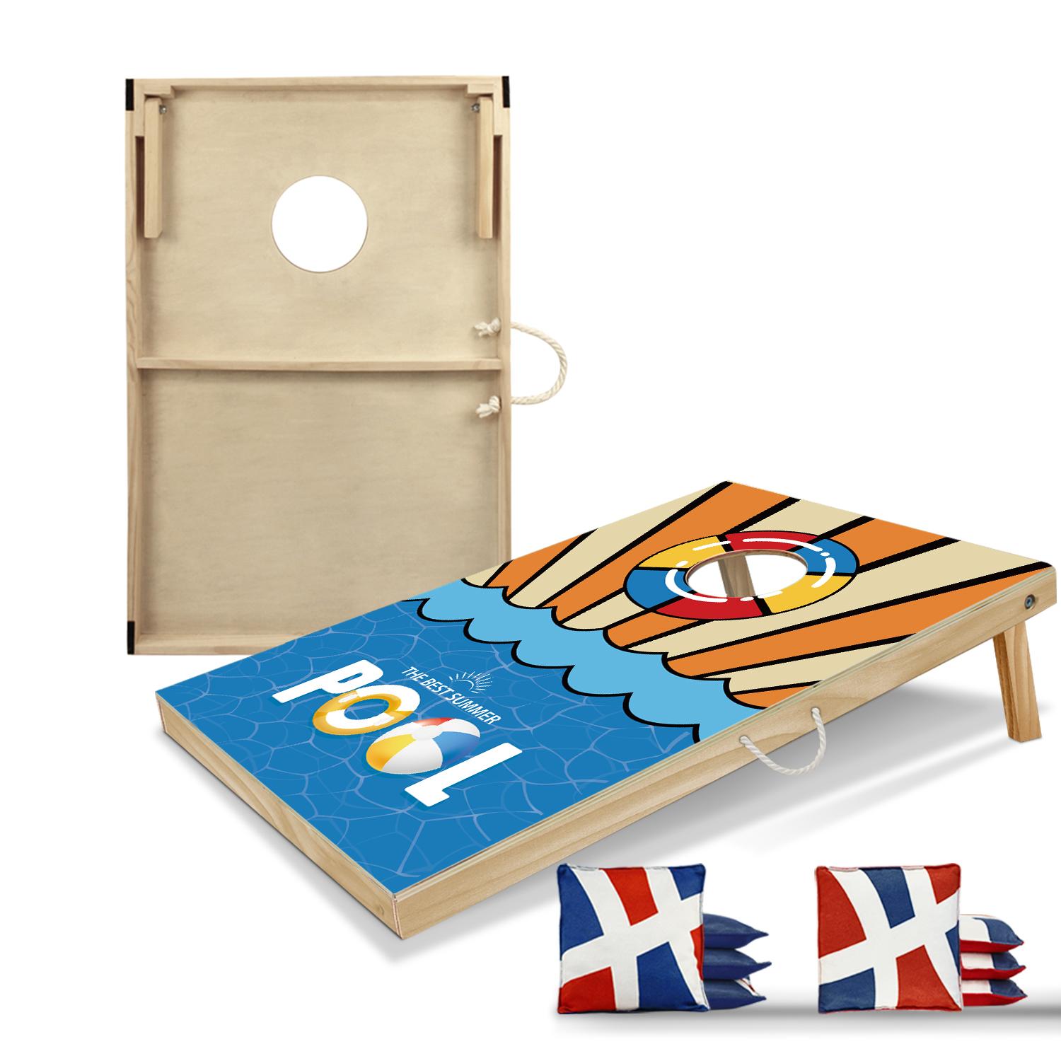 EASY AND CONVEINVENT TO MOVE: foldable legs, velcro on each corner and hemp rope handle, make it easy and quick to put two piece boards together for convenient storage and transportation.