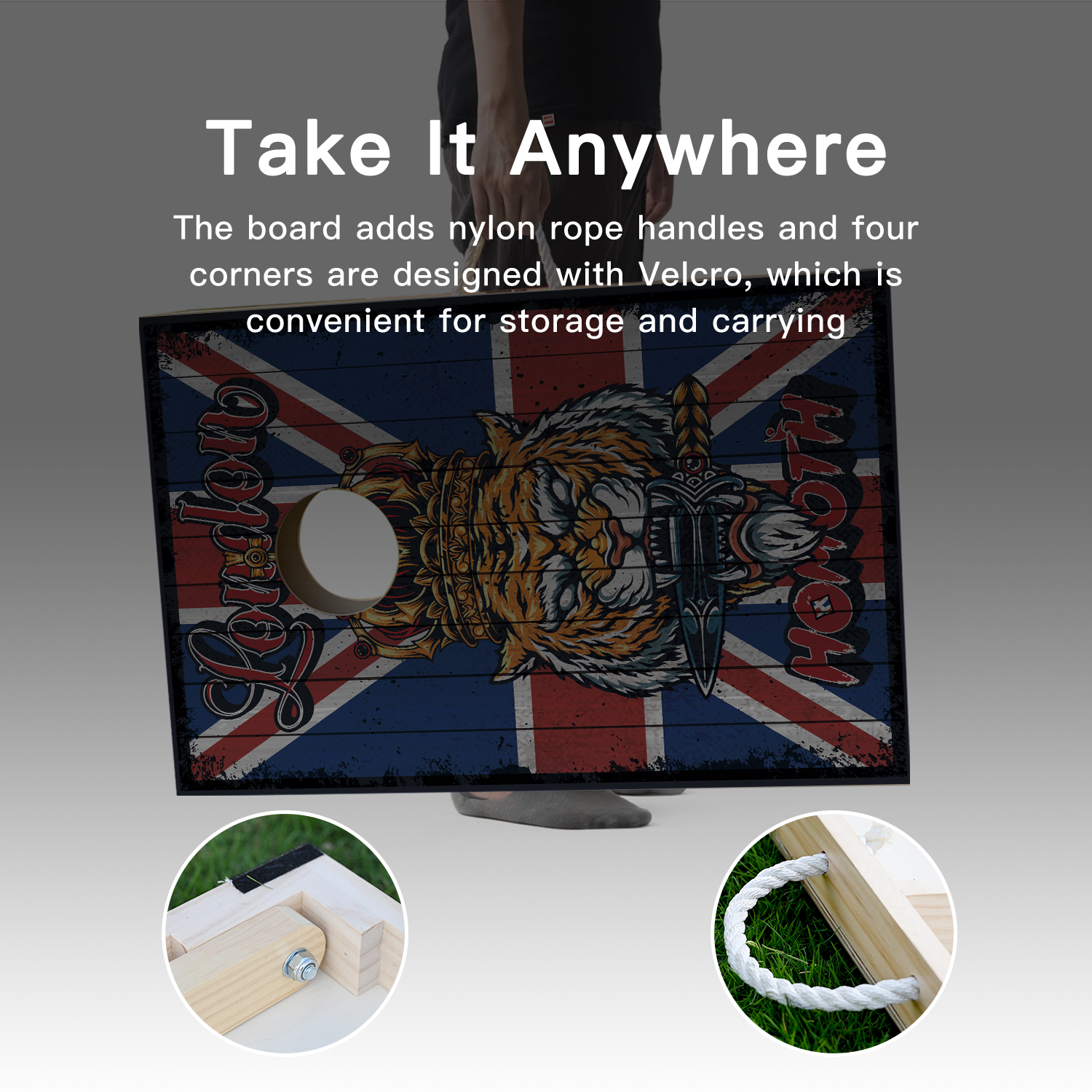 EASY AND CONVEINVENT TO MOVE: foldable legs, velcro on each corner and hemp rope handle, make it easy and quick to put two piece boards together for convenient storage and transportation.