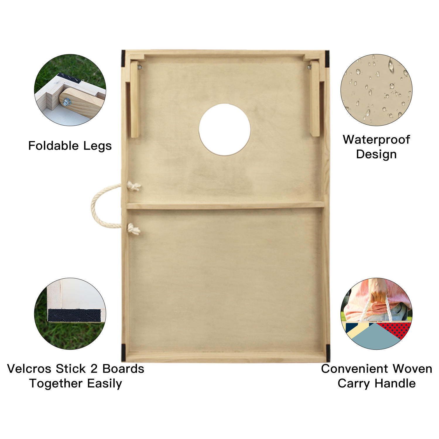 EASY AND CONVEINVENT TO MOVE: foldable legs, velcro on each corner and hemp rope handle, make it easy and quick to put two piece boards together for convenient storage and transportation.
