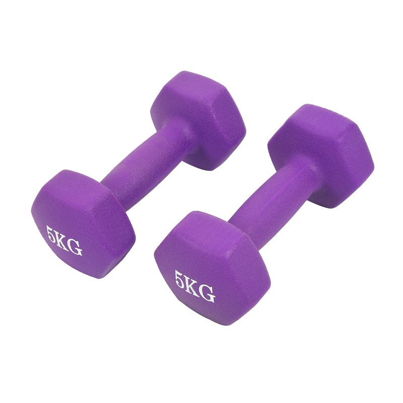 2x5kg (5公斤一对一卖) 六角磨砂哑铃 浸塑哑铃 彩色 男女健身哑铃(颜色随机)【大货必需要打托盘】 【无图无字纸盒包装