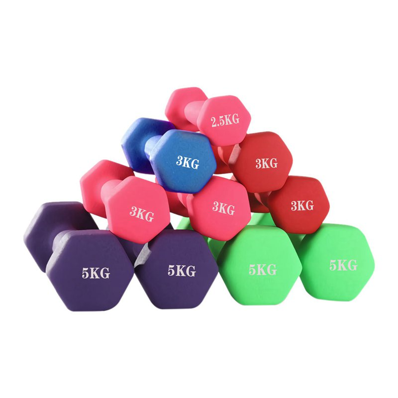 (5公斤一对一卖) 六角磨砂哑铃 浸塑哑铃 彩色 男女健身哑铃(颜色随机)【大货必需要打托盘】 【无图无字纸盒包装