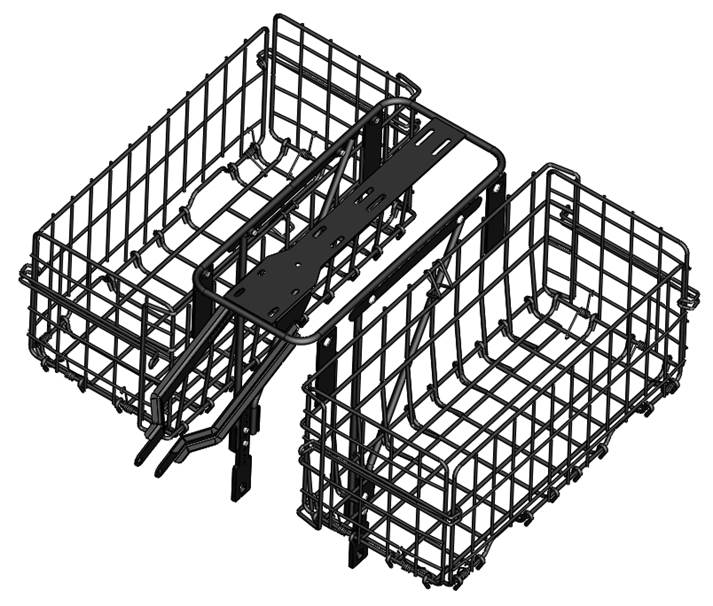 This bicycle cargo conversion kit is composed of three main components, a left folding basket, a rear rack, and a right folding basket. It is suitable for bicycles of general types that do not have a rear seat or can remove a rear seat.The basket for bikes not only can carry such as books, bags, grocery, and water bottles, but also could be folded to a smaller size for convenient storage while not needed.