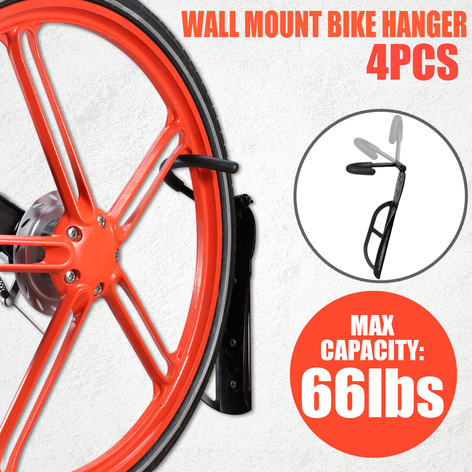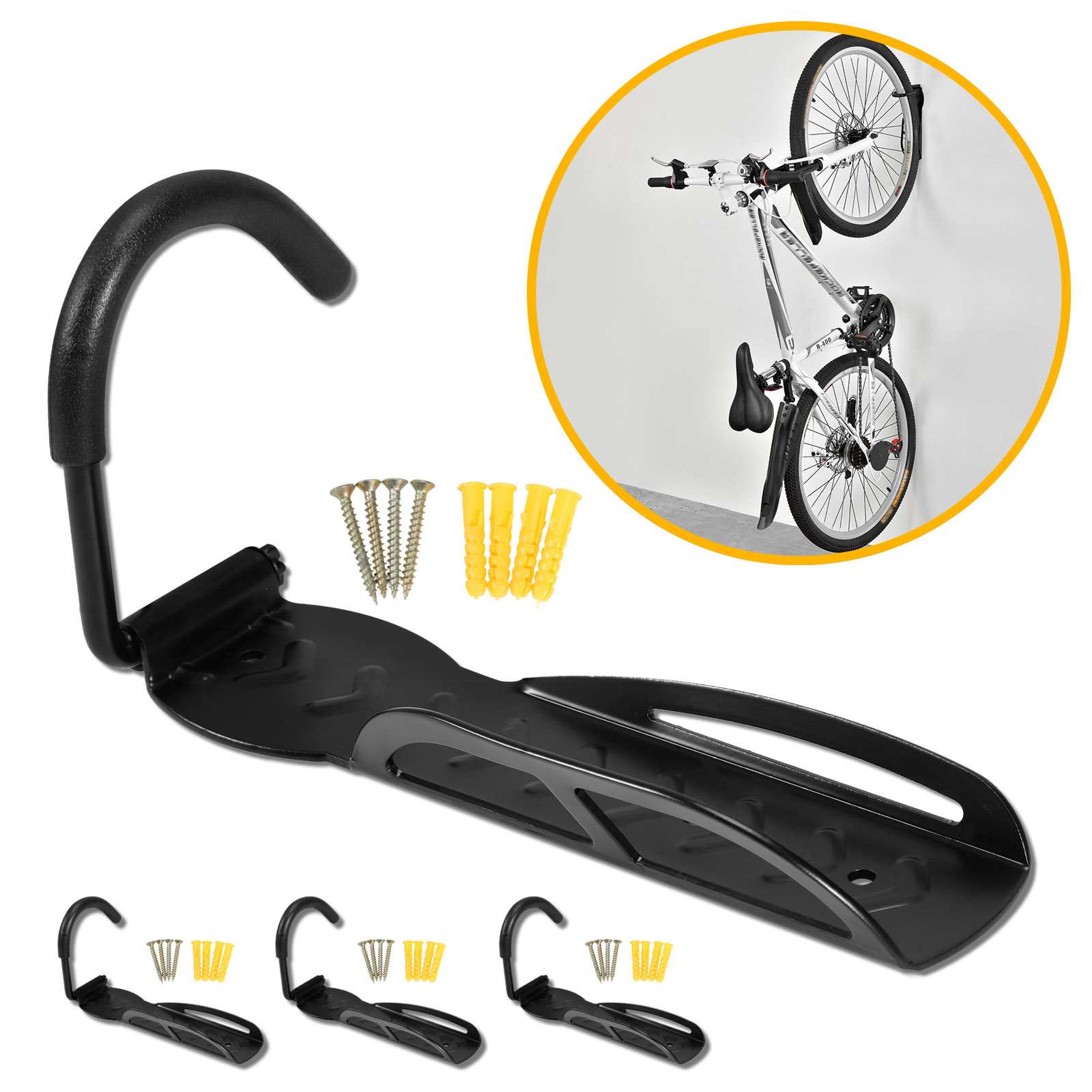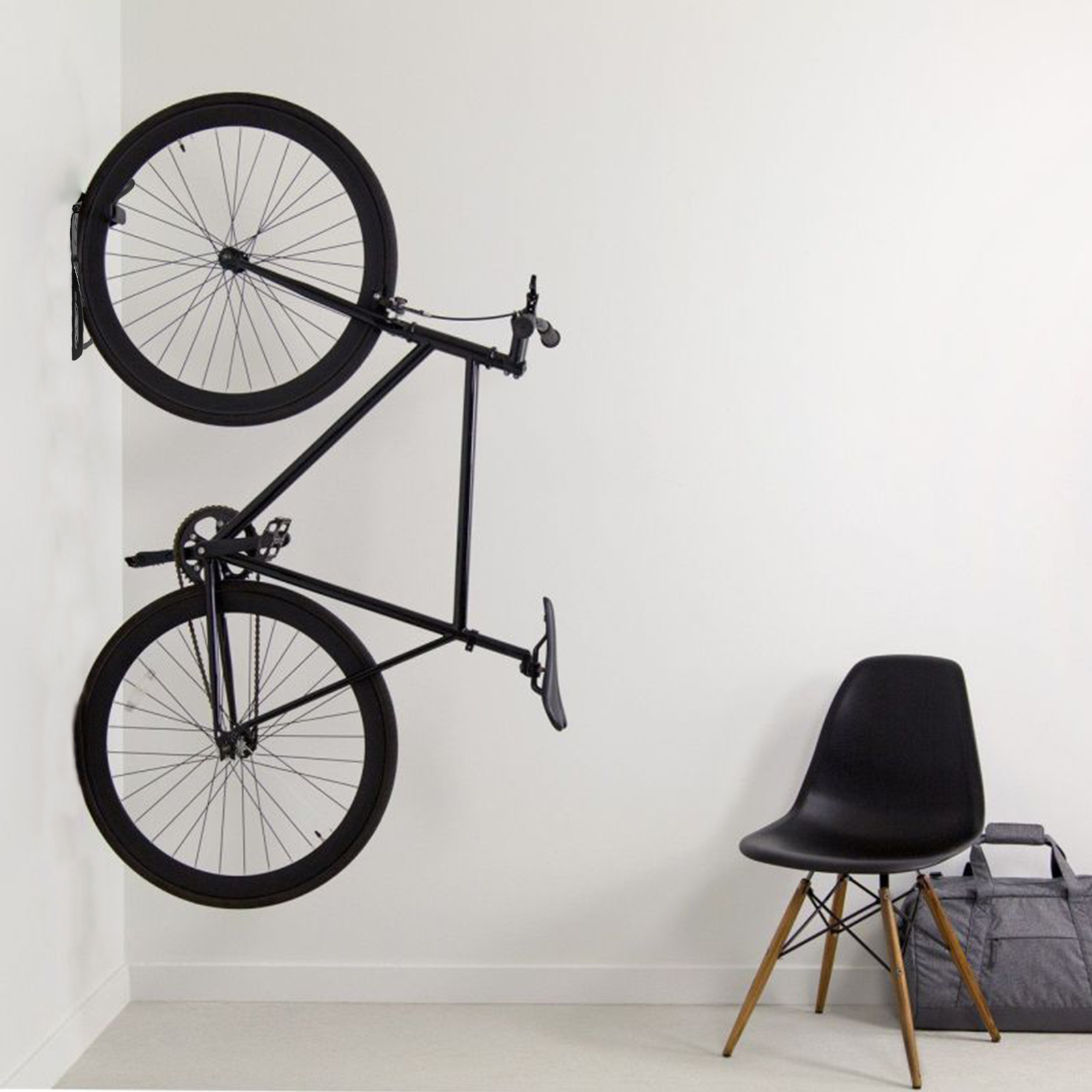Within easy access to your bike with this wall mount bike hanger. Store a single bike in a vertical position is more effective and space saving. Solid steel construction bears the heavy weight of your bike without deformation with its excellent ruggedness.