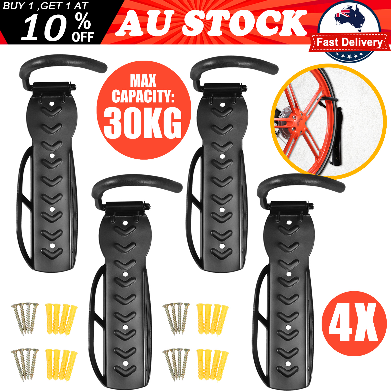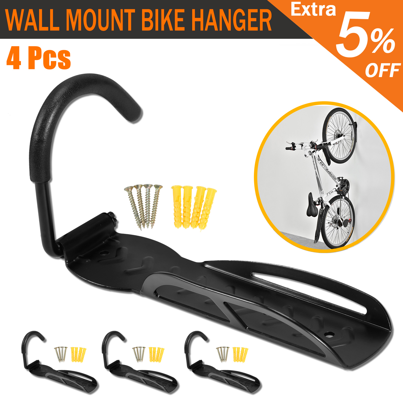 4x Wall Mount Bike Hangers