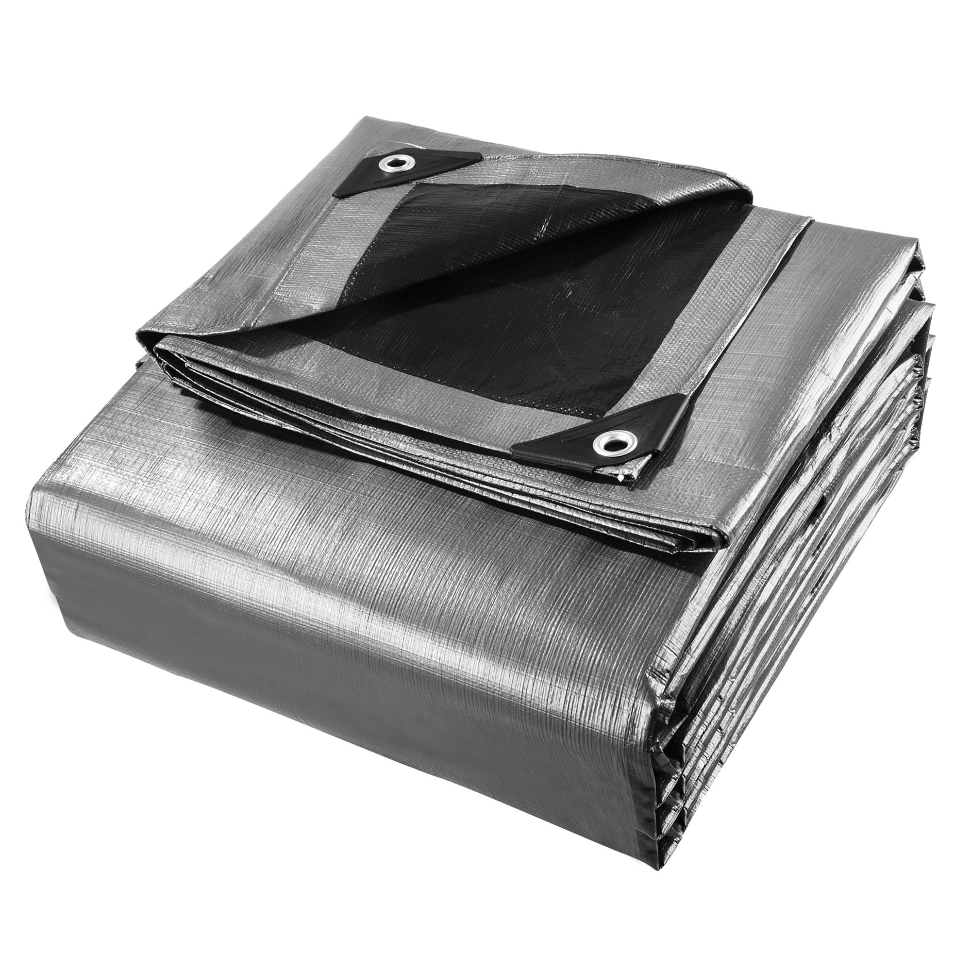 - Strong & Durable Shelter - 12 x 8.8 m silver and black poly tarp forms a strong and durable shelter from sunlight, rain and dust, cooler underneath in the summer; Long lifetime up to 3 years, it features good ability of anti-aging for long-time use