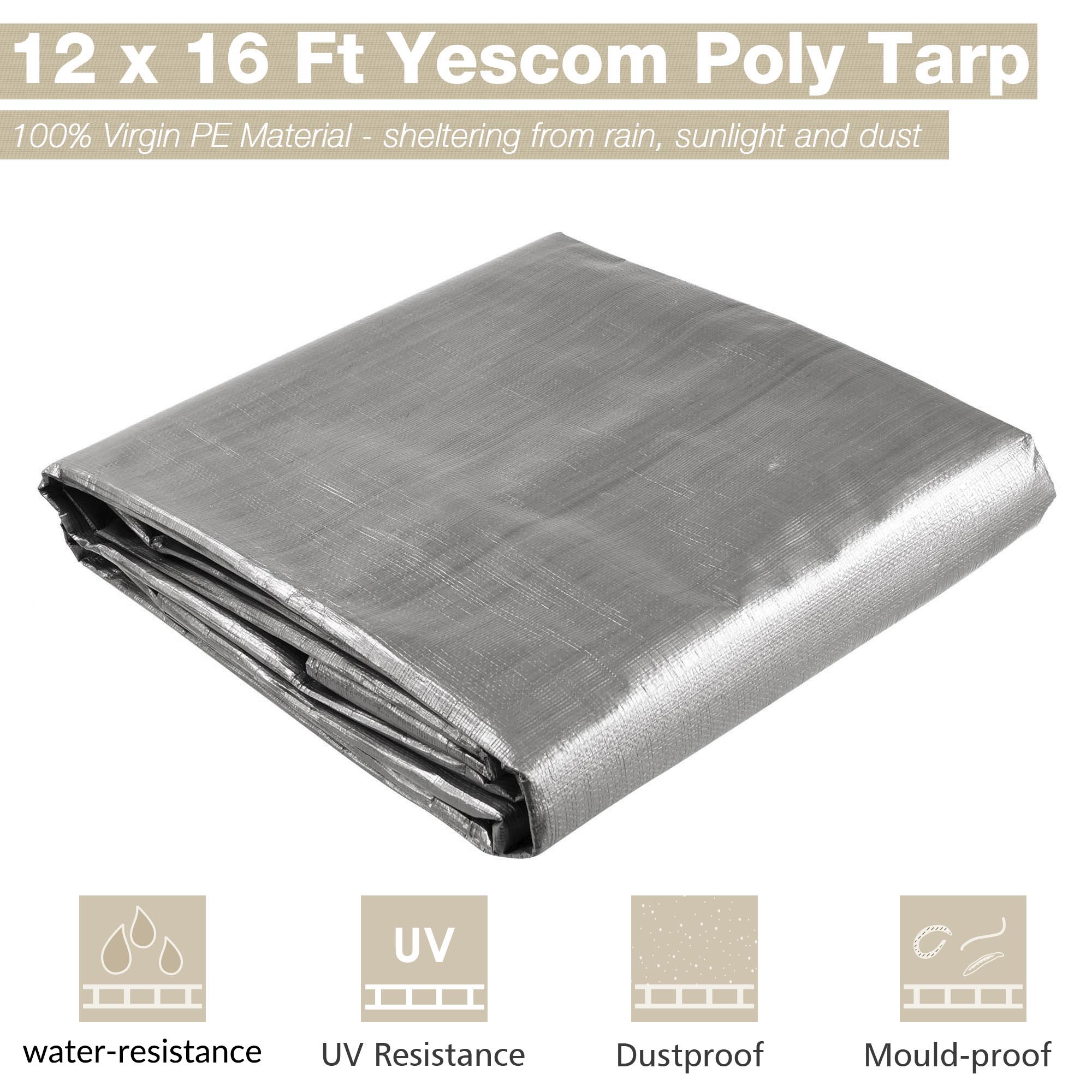 - Heavy Duty Sturdy Poly Tarp - Weights 2.94 kg, 10mil heavy-duty thickness and aluminum grommets in 1m (3 1/4 ft) interval for better tear-resistance; PP plastics capped reinforced corners with grommets for sturdy construction; All seamless edges avoid water leakage