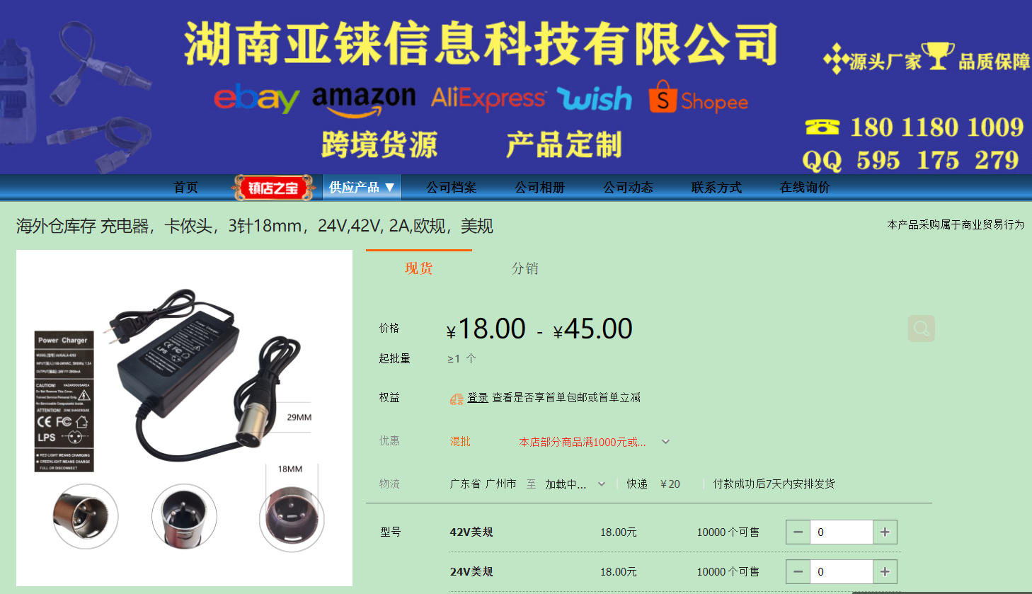 充电器,平衡车,18mm卡侬头,42V2A,美规 实际电流 1.5A 标注2A