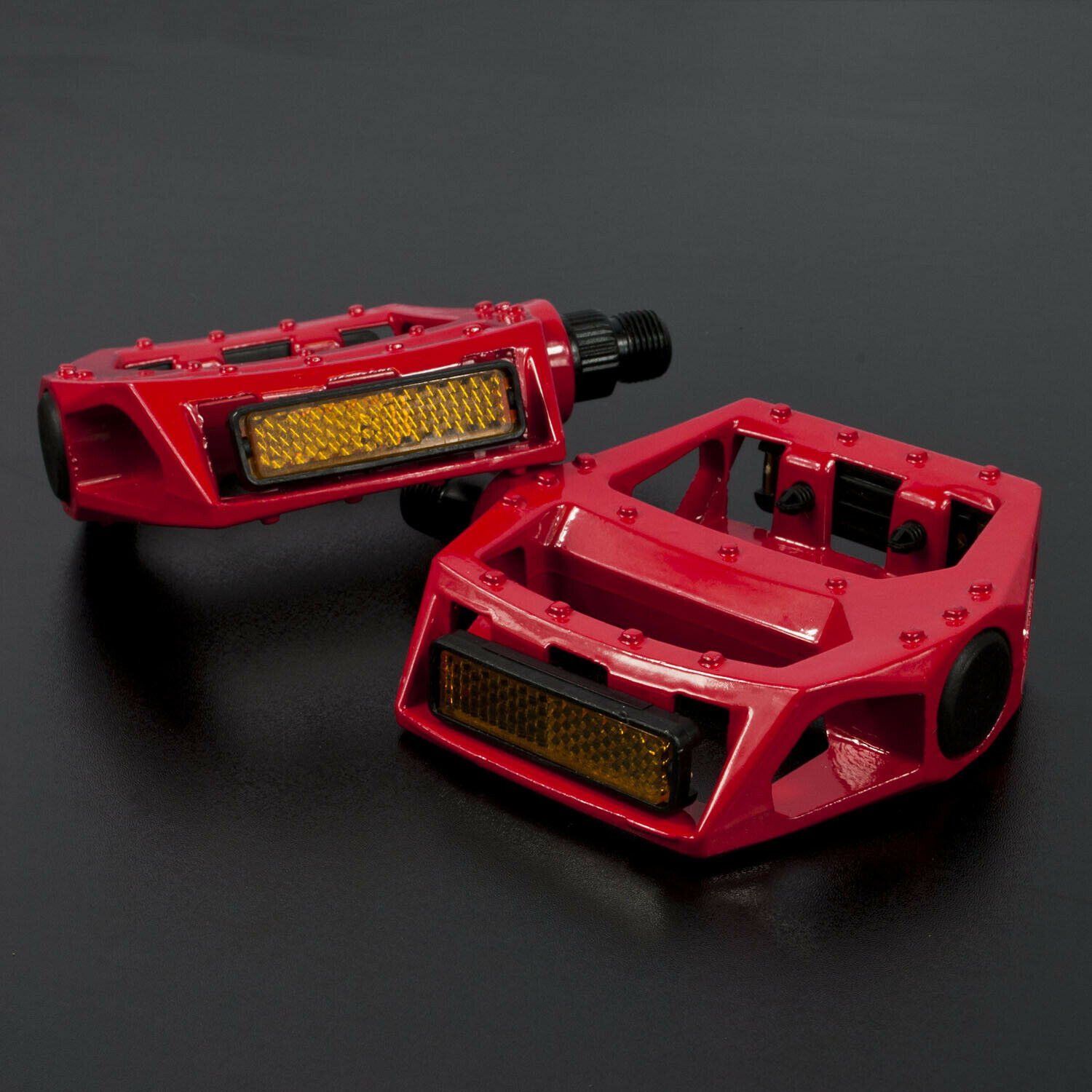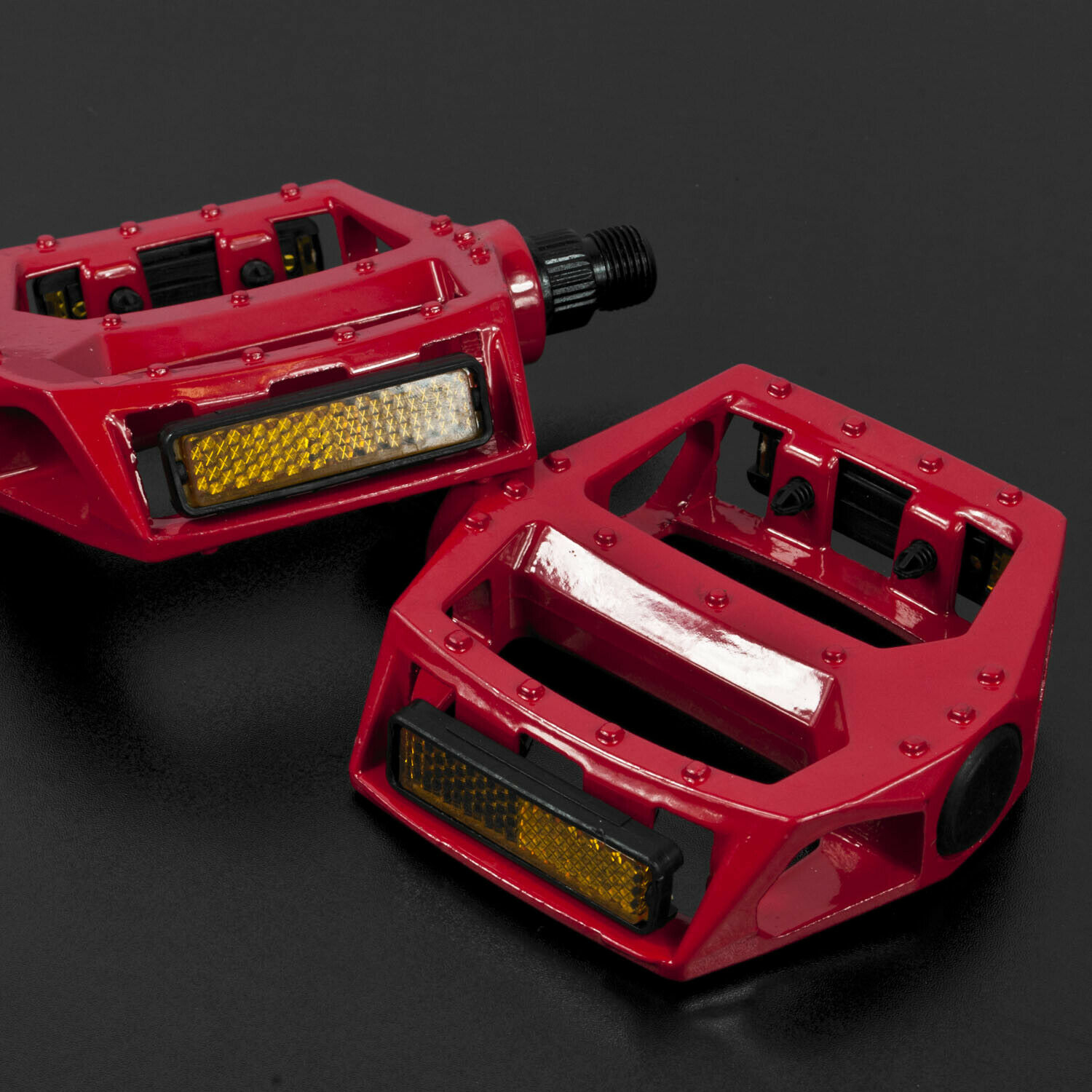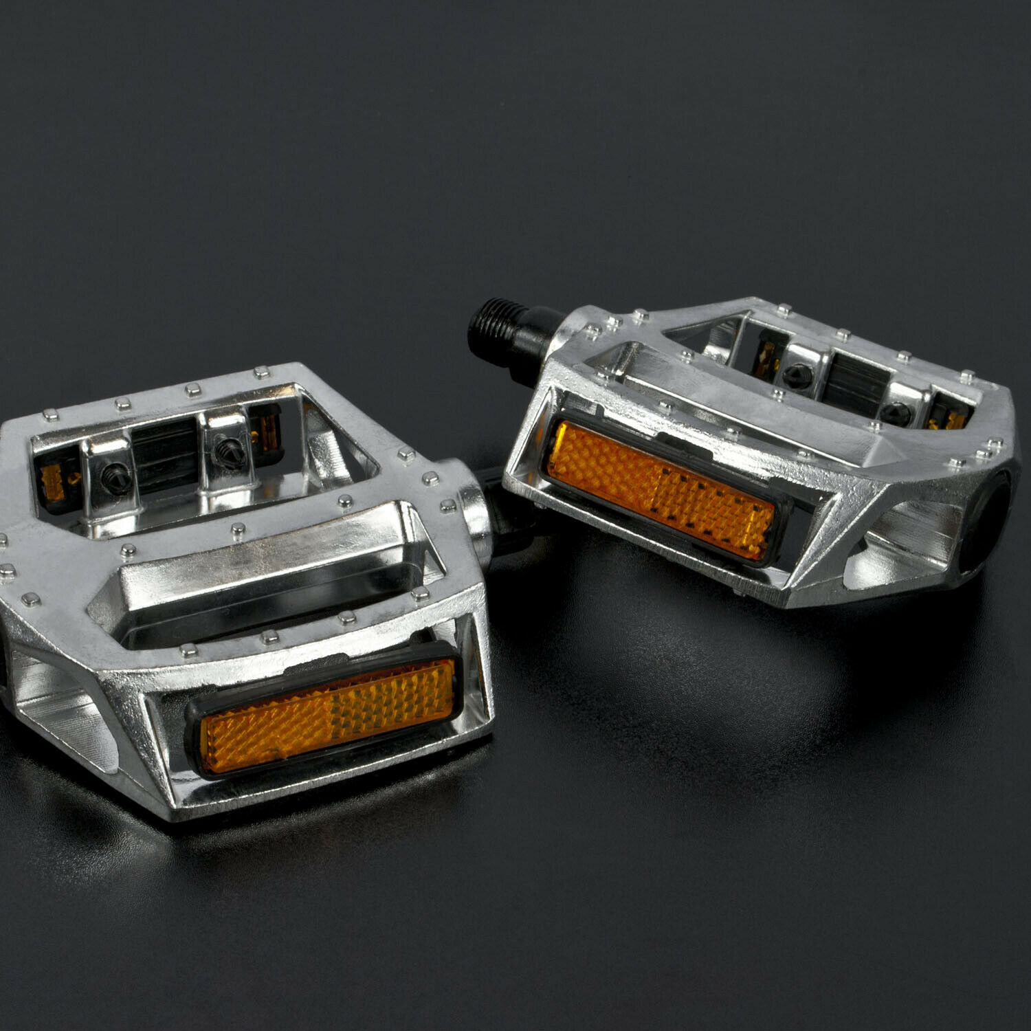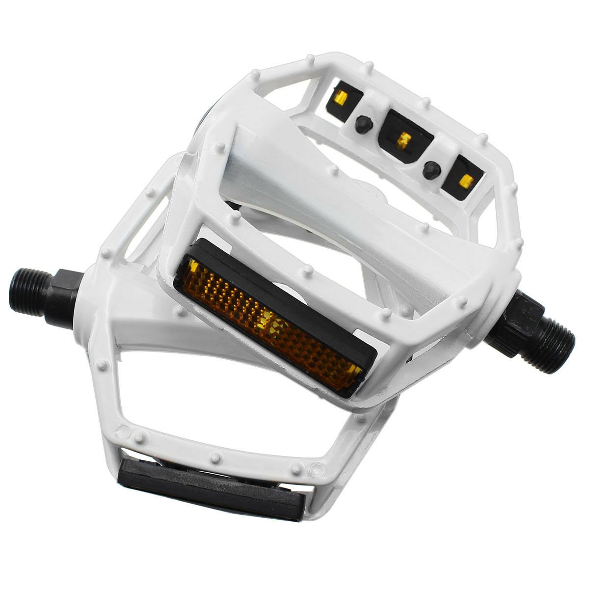 Reflective strip on each side of each pedal for added visibility whilst riding in low light