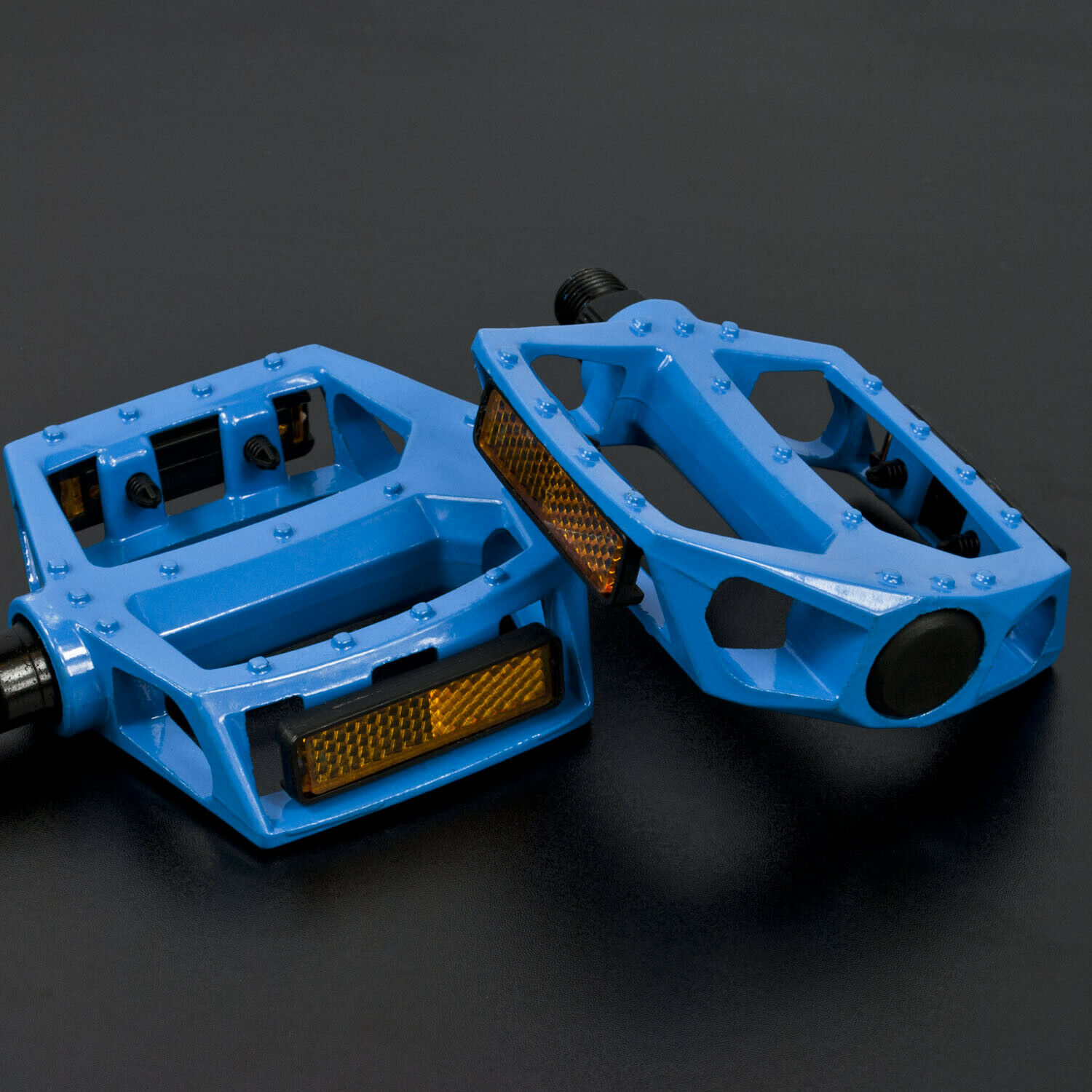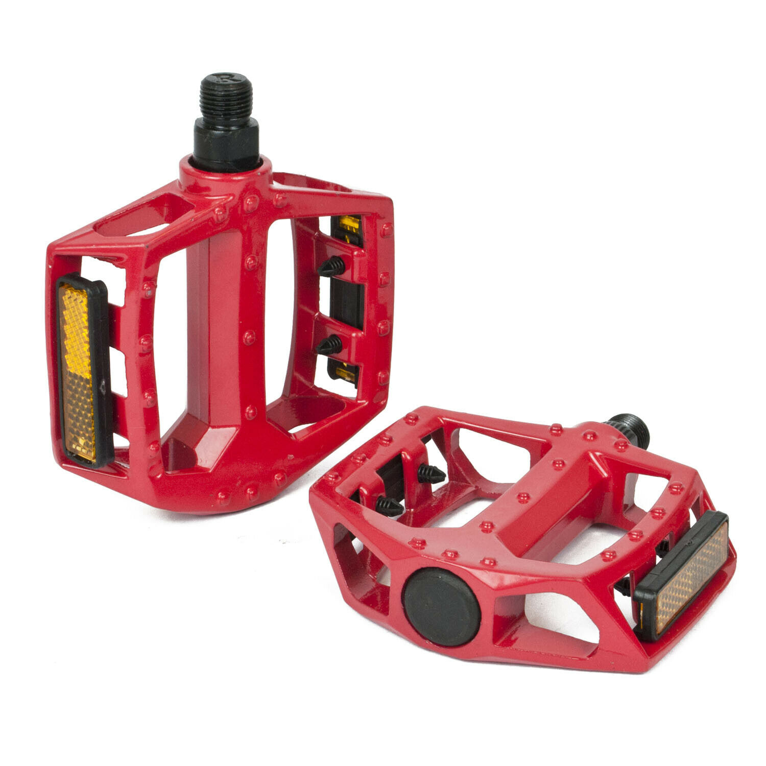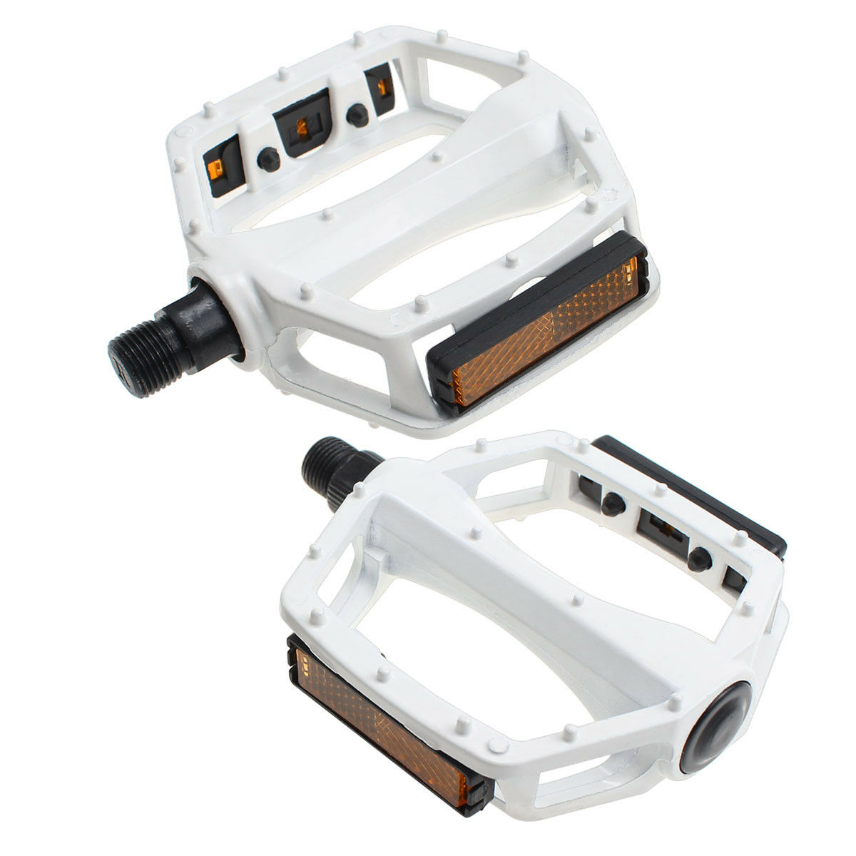 These pedals are made from a tough metal alloy to withstand plenty of use. They are perfect for all cyclists, from the casual commuter to the ambitious adventurer! The movement of the pedal is comfortable and consistent thanks to the smooth ball bearings within which allow full 360 degree rotation. Each pedal has a reflective strip on either side to provide some extra visibility in low light.
