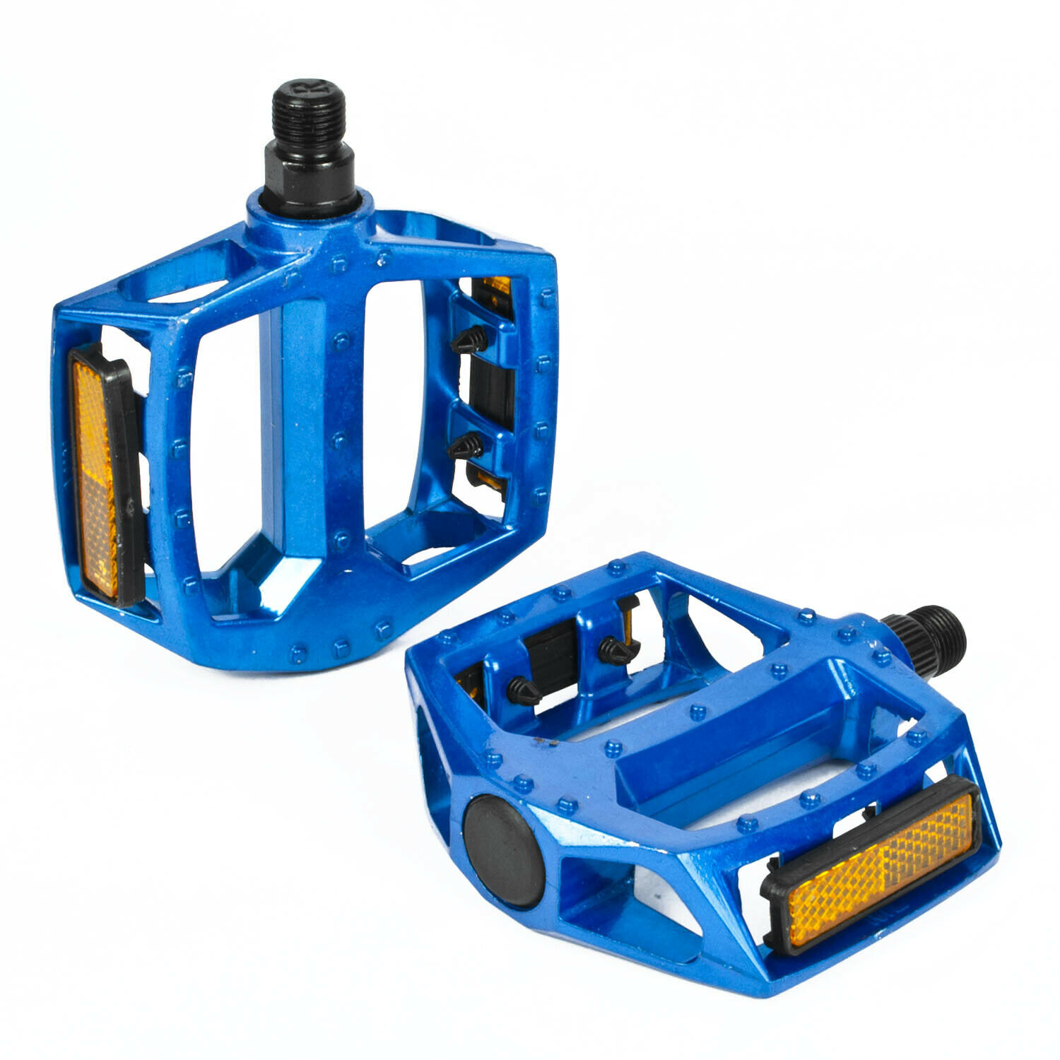 These pedals have a footplate size of 90mm x 95mm and are designed to fit on standard 9/16" threads. They are easy to fit, and have a strong metal body to last as much mileage as you can tackle. They are also available in a range of colours.