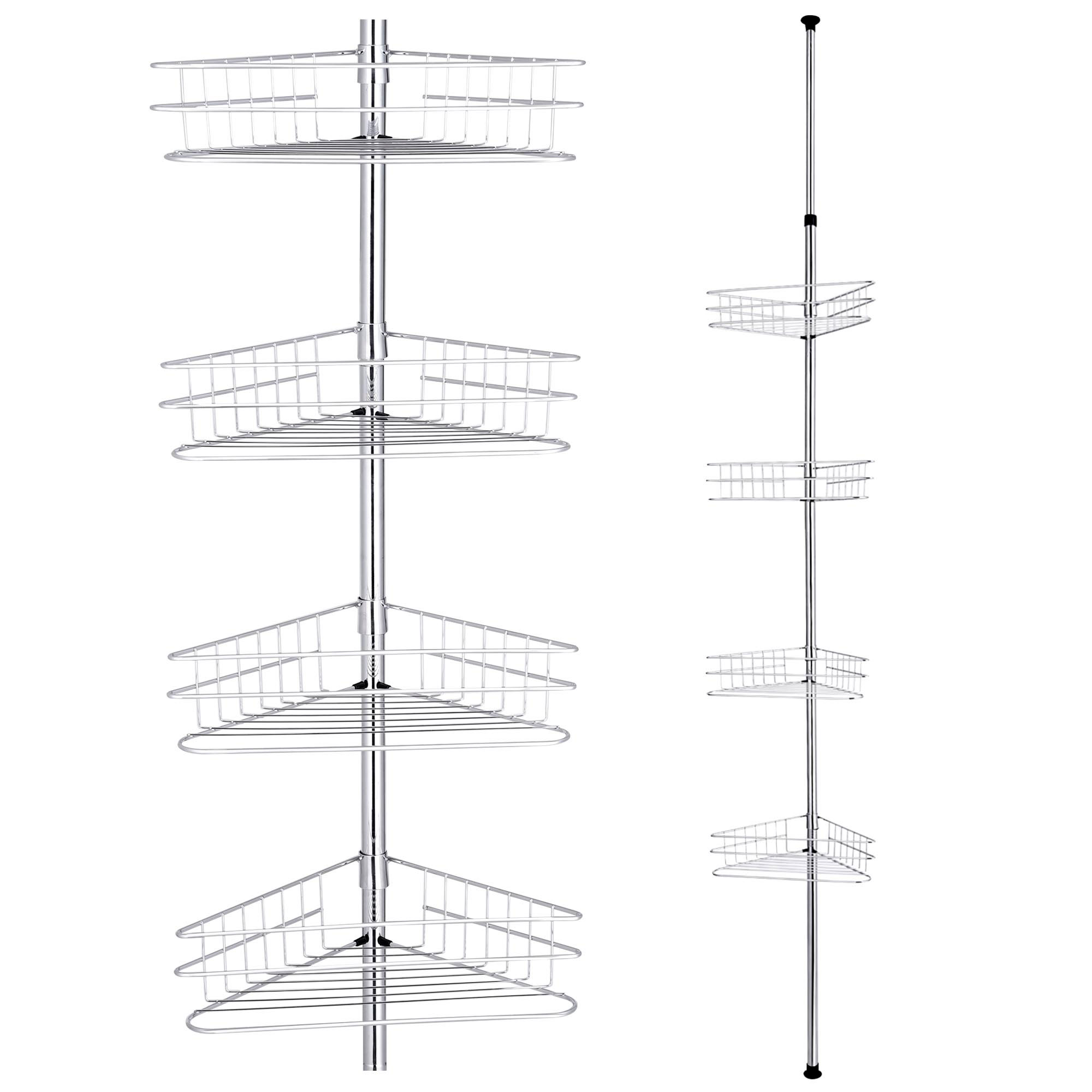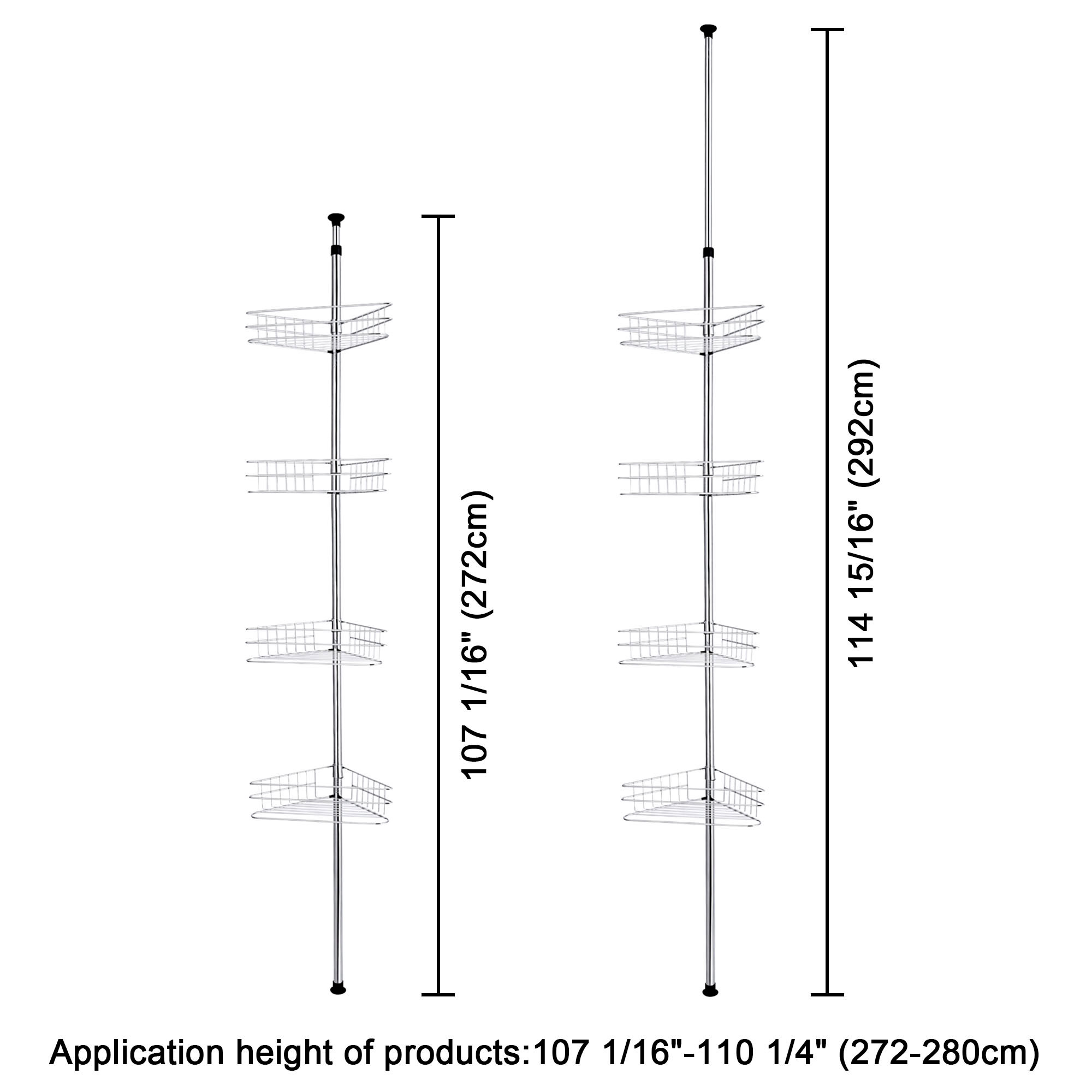 - Adjustable & Space-Saving - 4-tier wall corner shelf features height adjustment from 272 to 292cm to fit for ceiling height of 272 to 280cm; 4 baskets with compact size of 32.8 x 20.4cm for holding bath accessories, perfect for keeping things organized and tidy and maximizing bathroom storage space