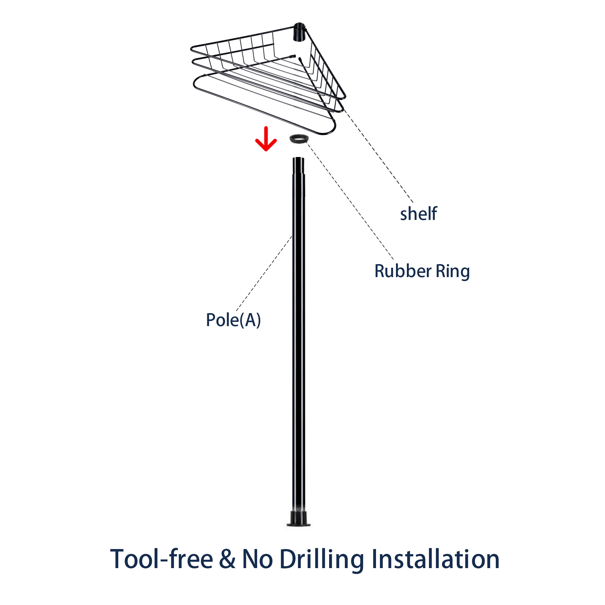 • Tool-free & No Drilling Installation - Simply connecting pole and basket, adjusting the height to fit in the bathroom corner; Owing to sectional pole and built-in spring, no need to drill while installing, easily assemble a convenient and useful shelf all by yourself