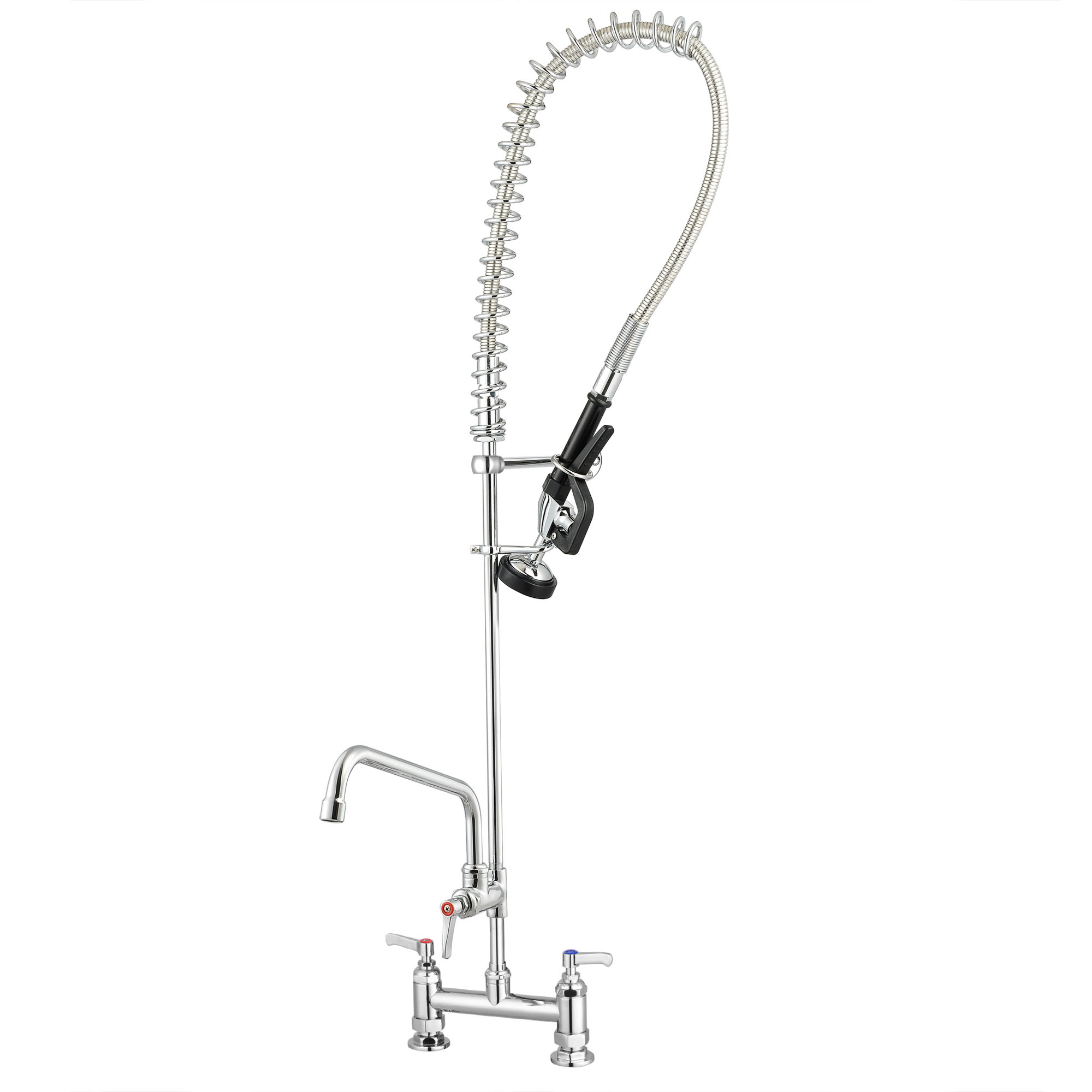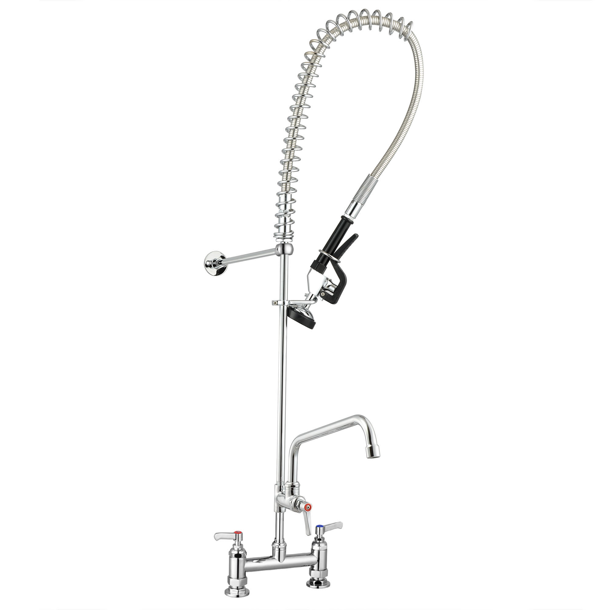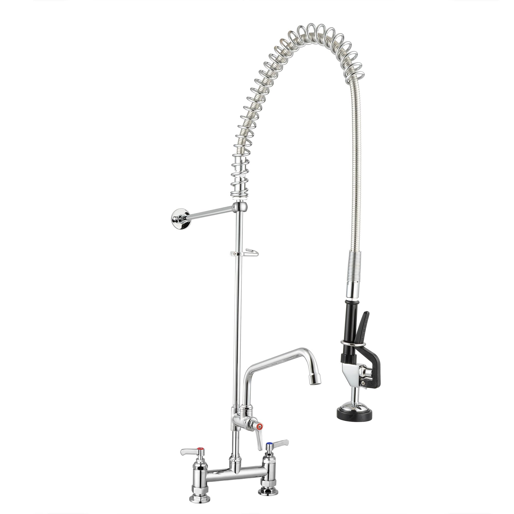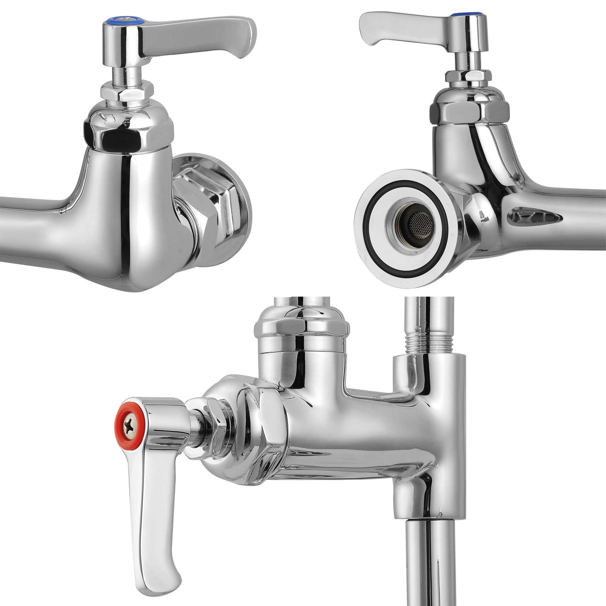 - Easy Adjustment - Double Lever handle for adjusting water temperature; Valve to control sprayer, handle on the faucet for opening and closing add-on faucet, flexible adjustment for commercial use