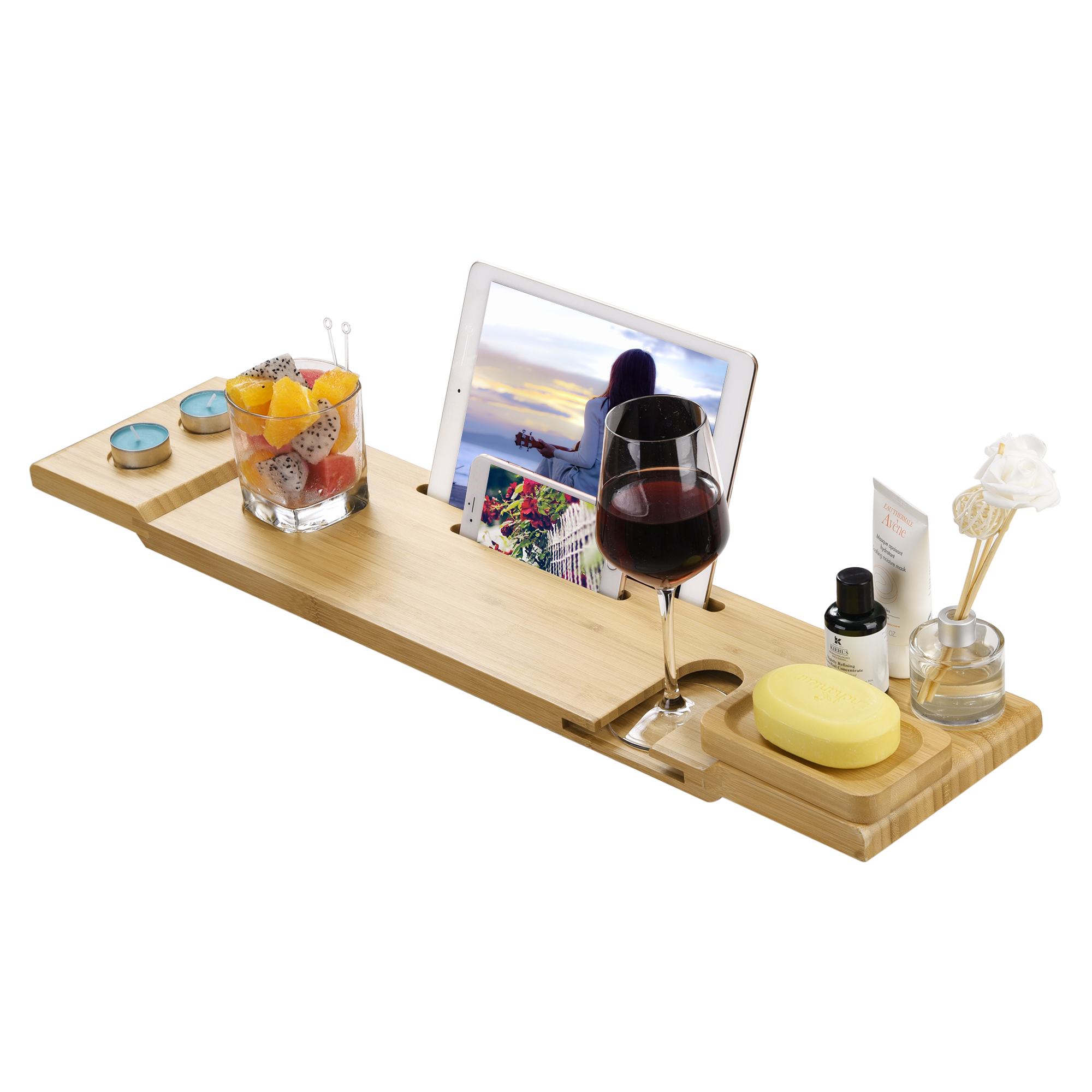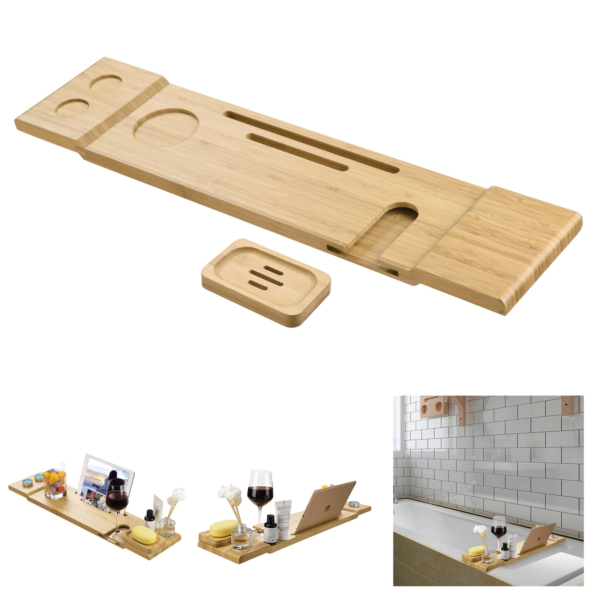 - Premium Relaxing Bath Experience - Bathtub caddy tray for organizing your aromatic candles, wines & tablets during your bath, improves your cozy bath experience, captures utterly chic atmosphere and increases your life quality