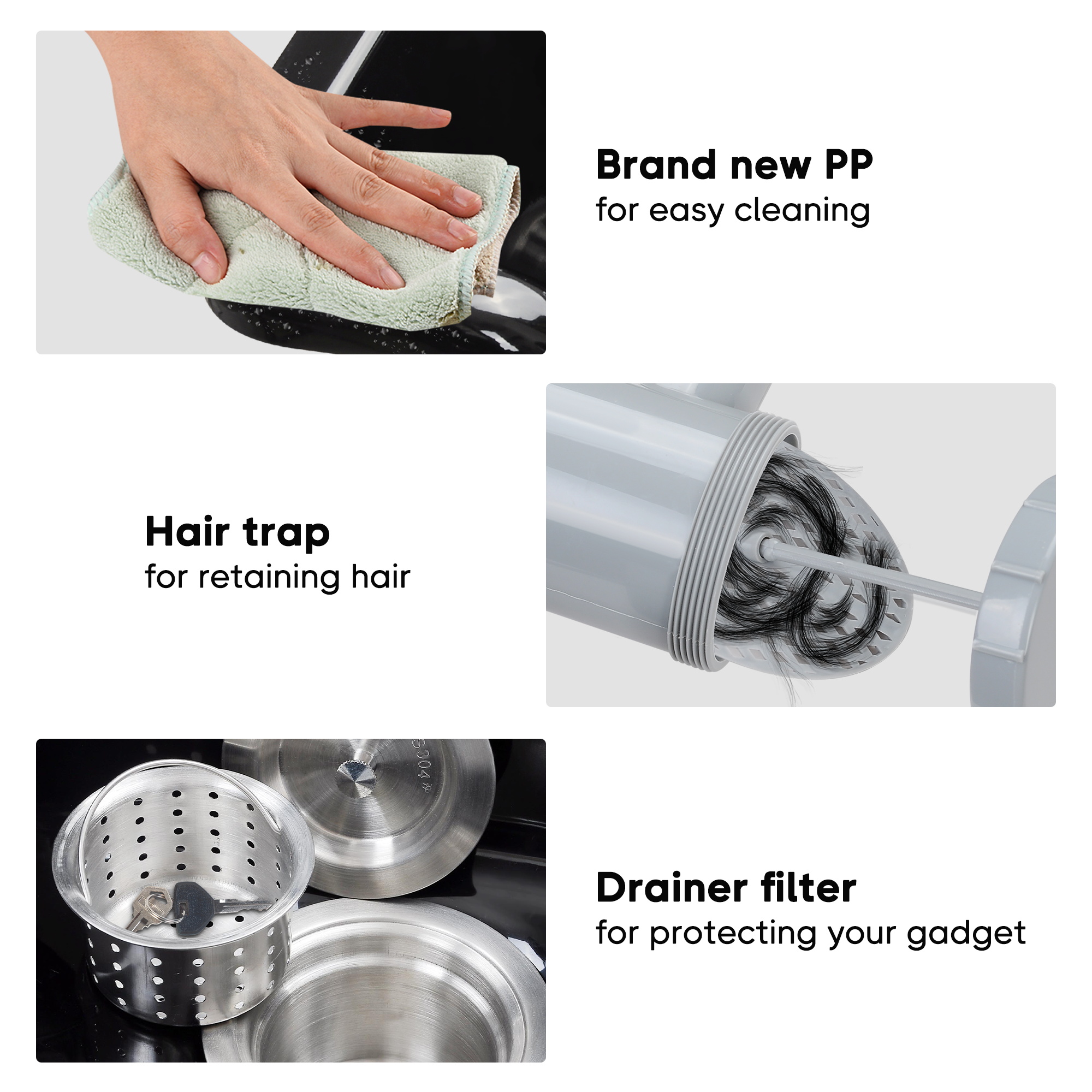 - Easy Cleaning - Brand new PP shampoo bowl & waterproof silicon gel neck rest for anti corrosion; Hair trap perfectly retains the fallen hair and other items for easy cleaning, reducing the risk of blockage