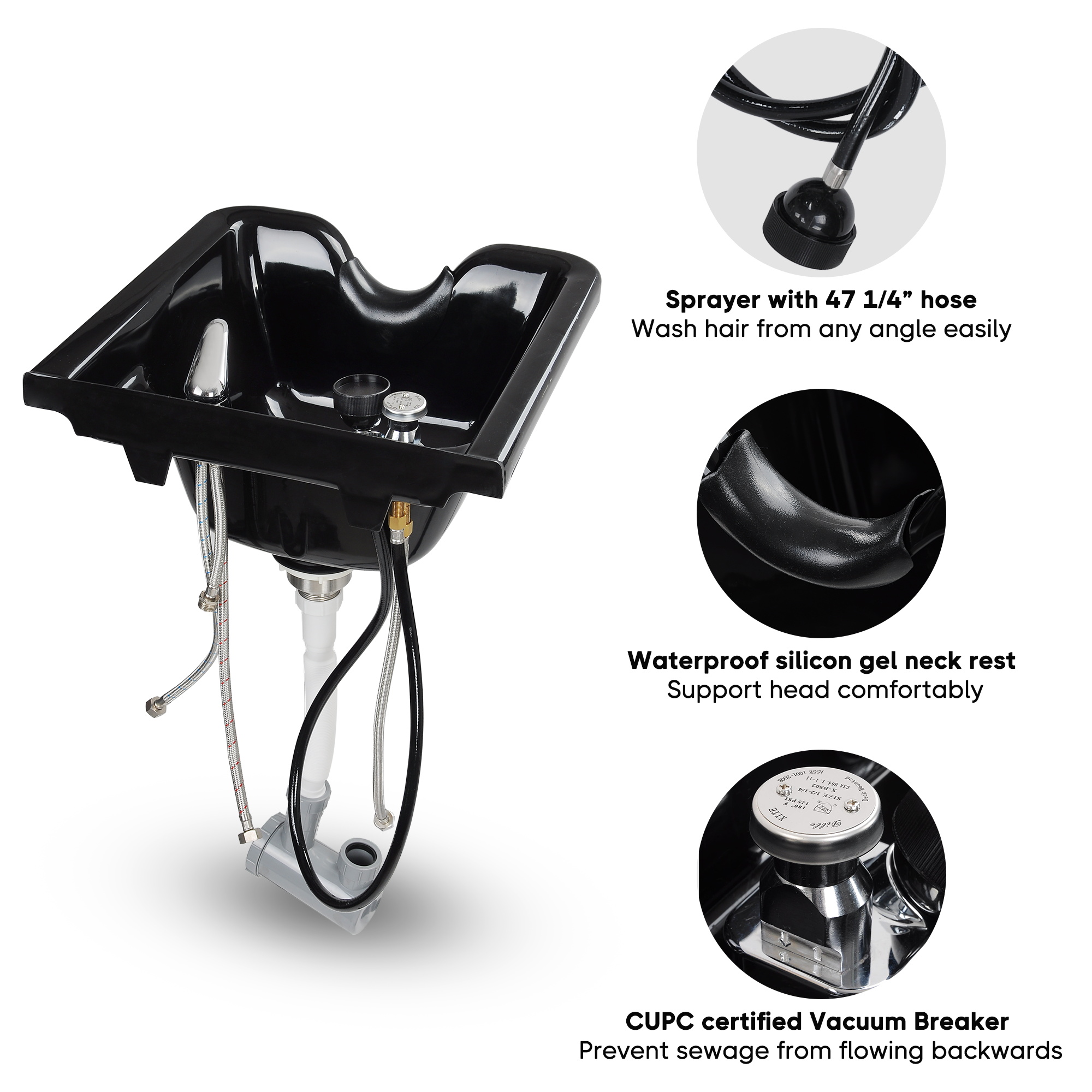 - Comfortable Use - Larger bowl for larger work area; With 47 1/4" shower hose for washing hair from any angle easily; waterproof silicon gel neck rest for supporting head comfortably, making a better shampoo experience