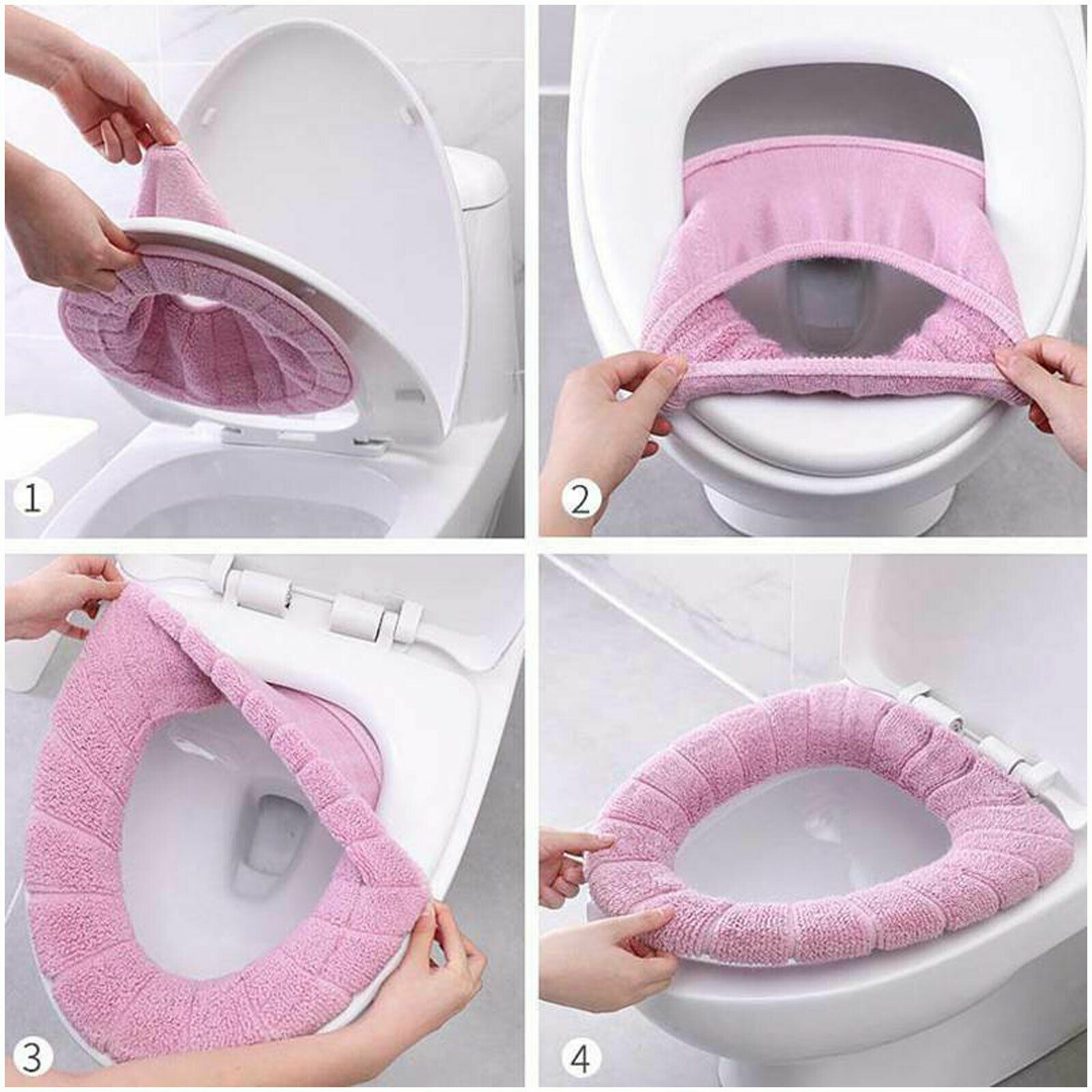 4.How to install: place cover with ring facing underside of toilet seat, pull cover through the hole, then stretch cover over toilet seat.