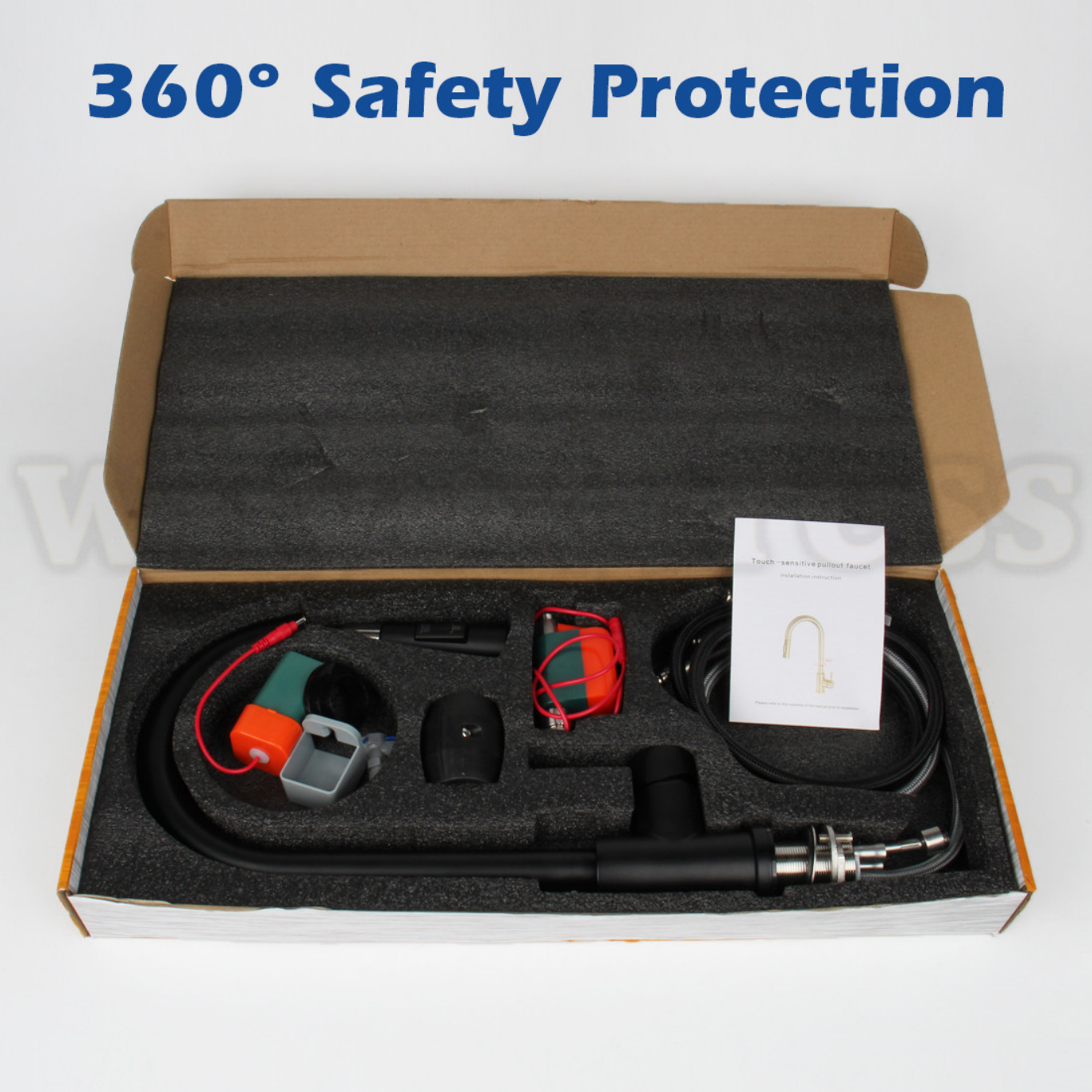 The system adopts e-field sensor technology and controls the switch of the faucet with a smart chip. As long as you touch the body of the faucet, water can come out.