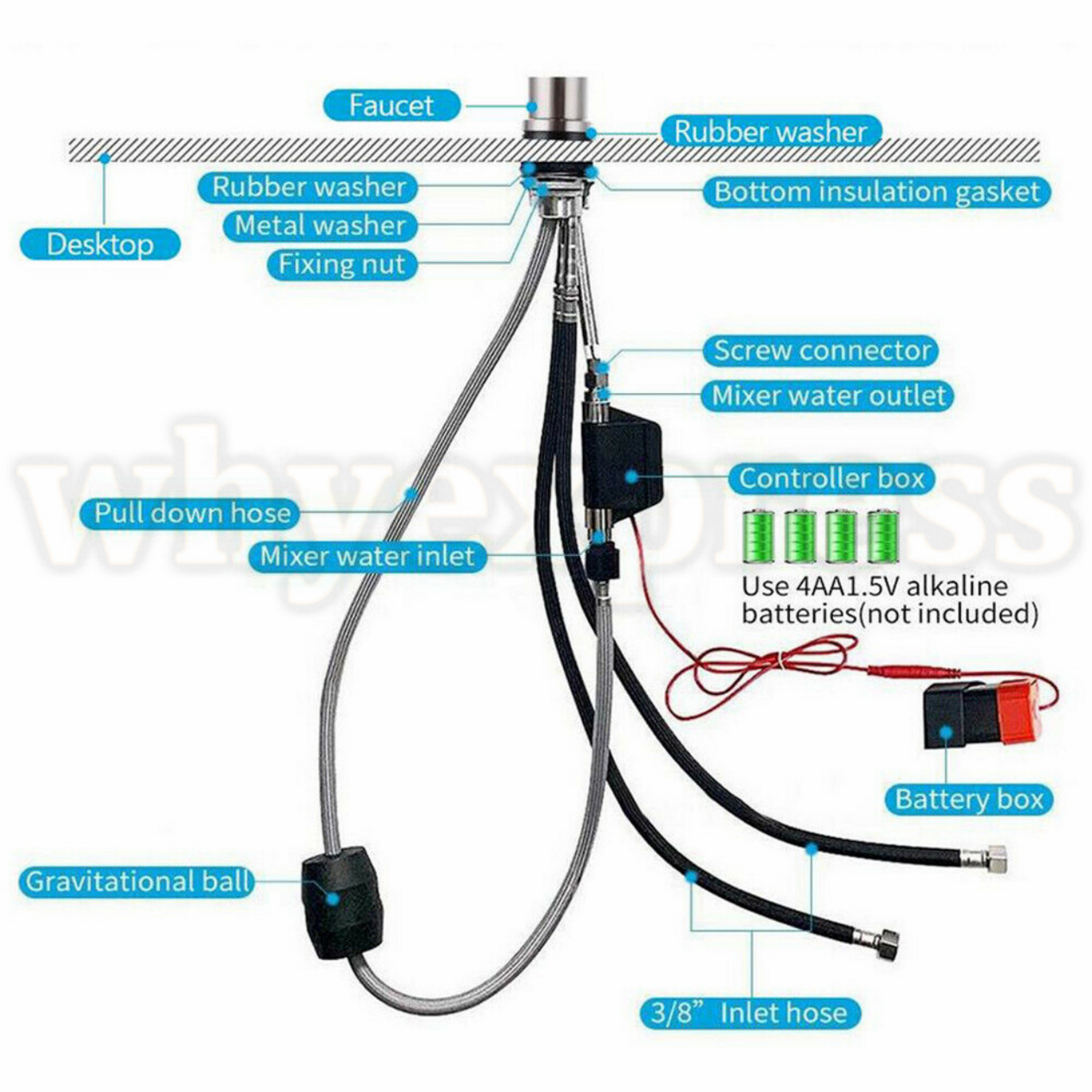 Easy Installation: - 4 AA Batteries (not inculde) operated for up to 1 year Battery life, easy install by yourself within 5 mins.Backed by our Faucet’s Lifetime.