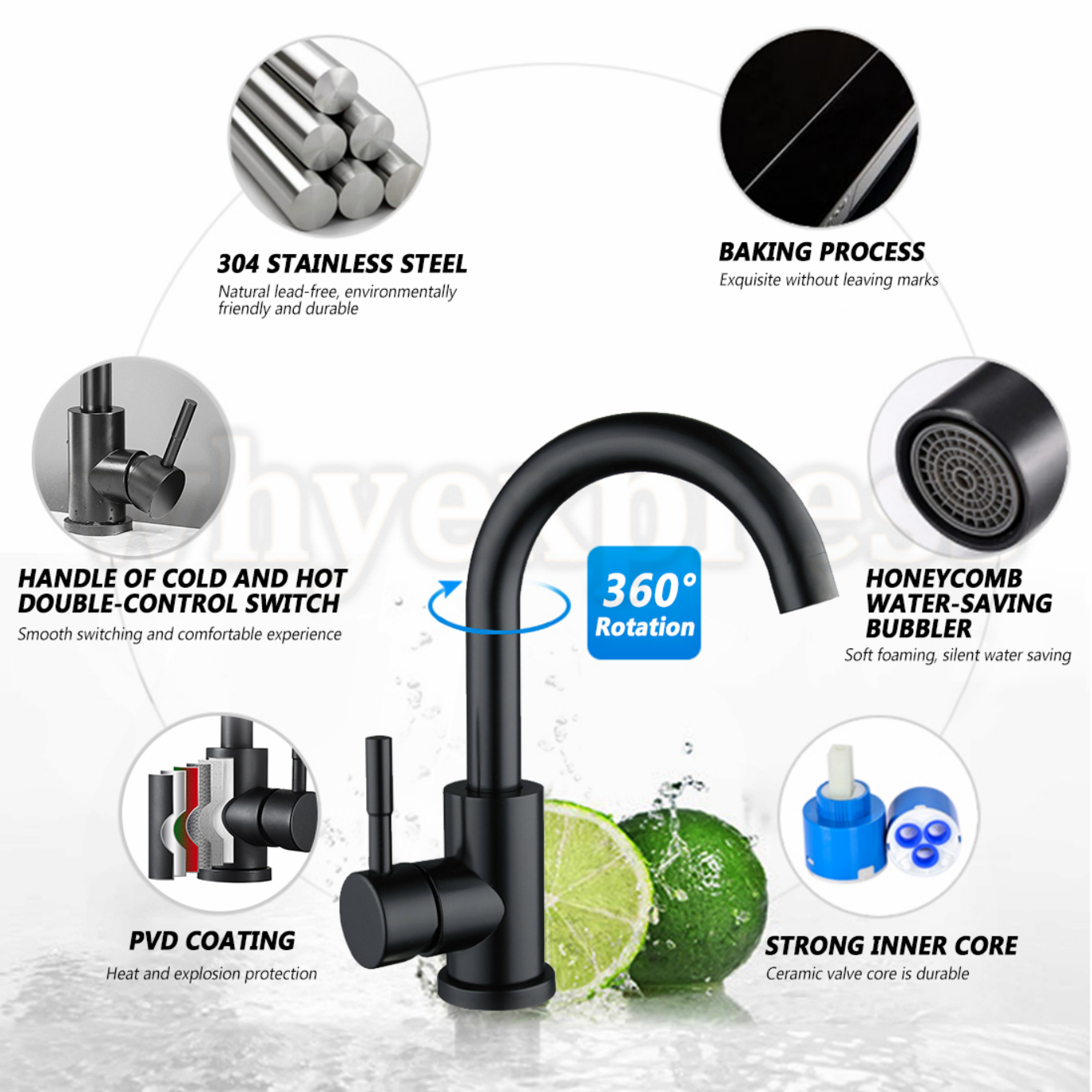 Water Saving Faucet Sprayer: Single handle design integrate to control water temperature and flow volume easily,high arc 360 degree swivel spout supply full range washing