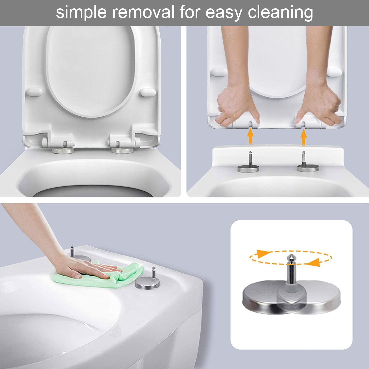 Die Soft-Close-Funktion verhindert Kollisionen zwischen Toilettensitz und Toilette und verhindert, dass Finger eingeklemmt oder verletzt werden.