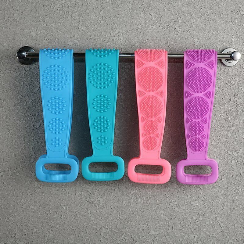 - 70*12Cm Long Soft Silicone Bath Towel Pull Back Strap Wash Scrubber Exfoliating Scrub Soft