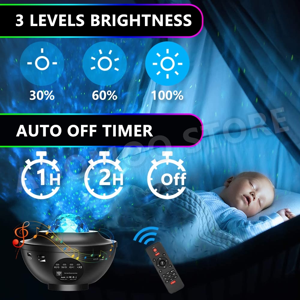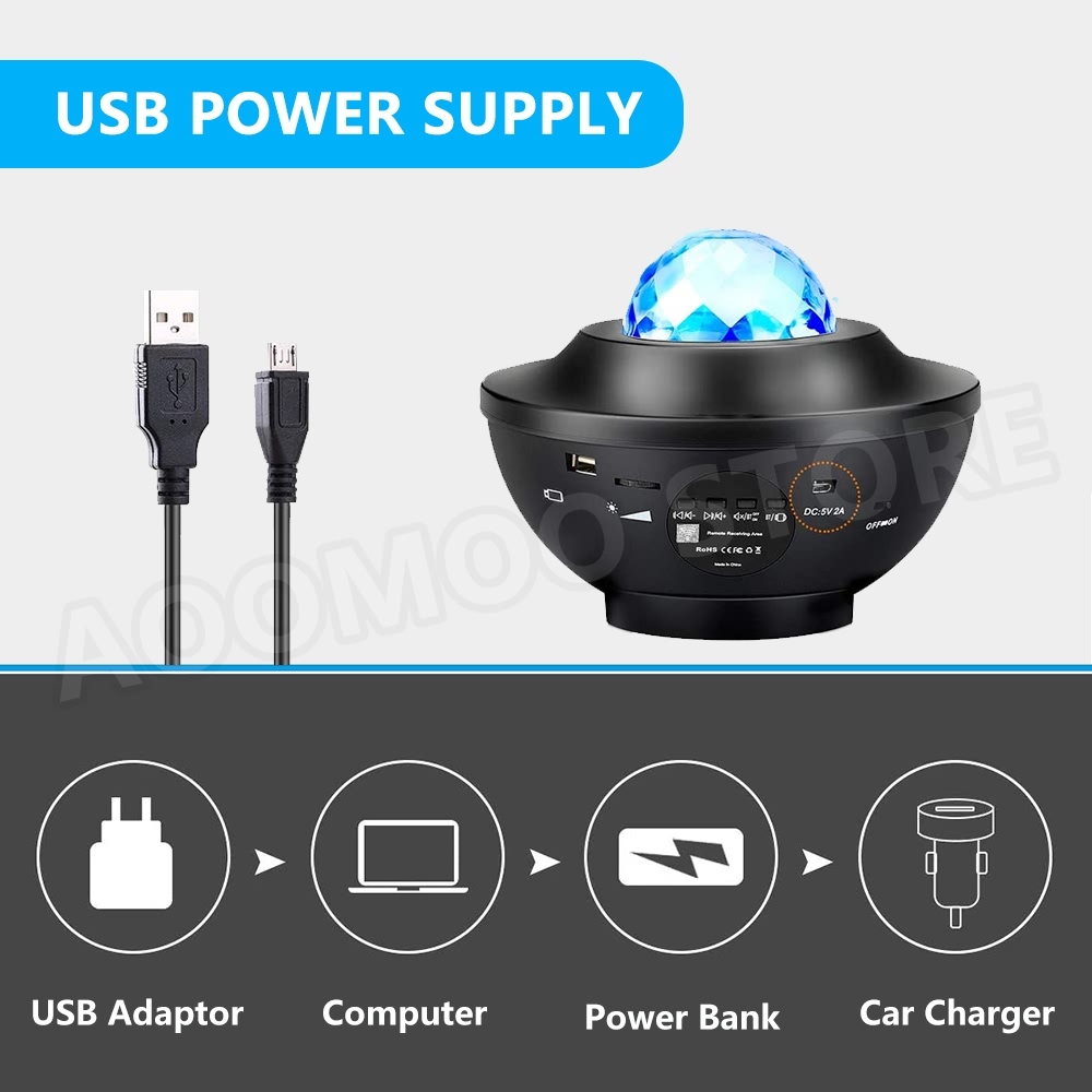 The rotating baby star projector can be used at kids room, it also great for living room, bedroom, ktv, bars, coffee shop, restaurant or other acitvities like Christmas, Weddings, Birthday Party. The DJ lights will be charged by USB cable, can be charged fully easily with your power bank or laptop, you can take it anywhere you need.