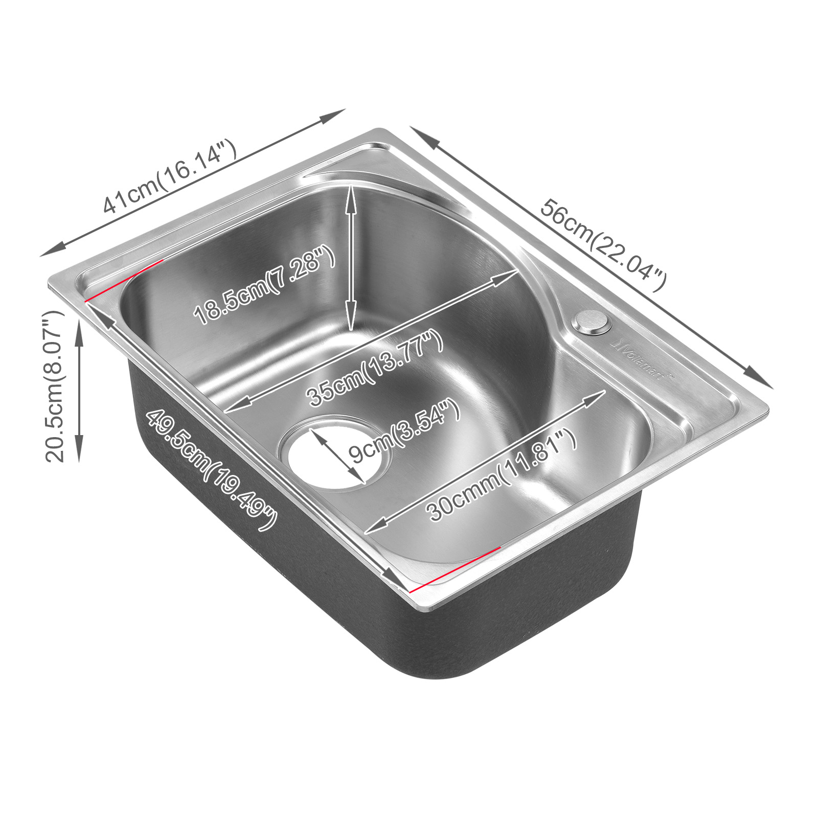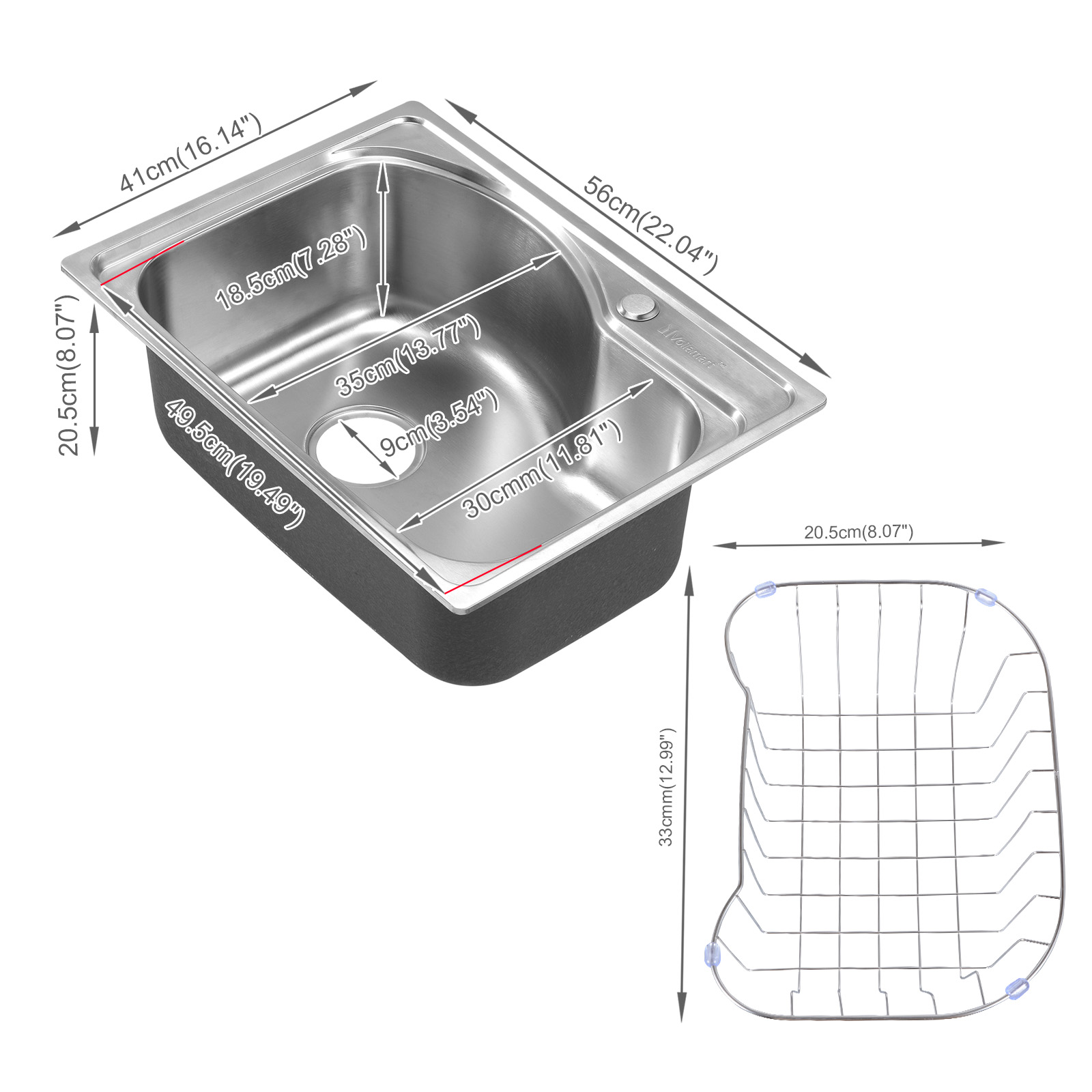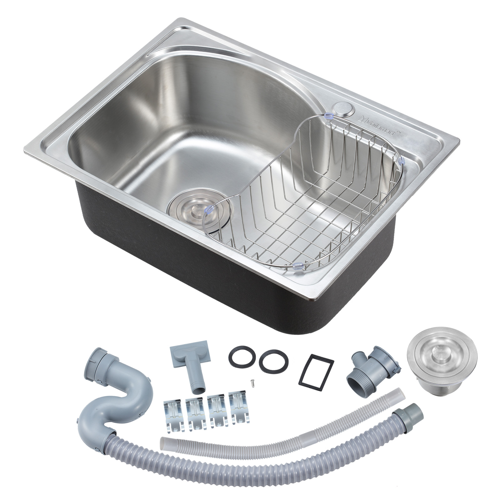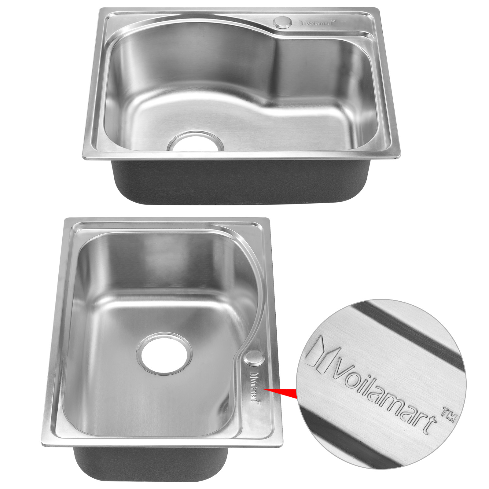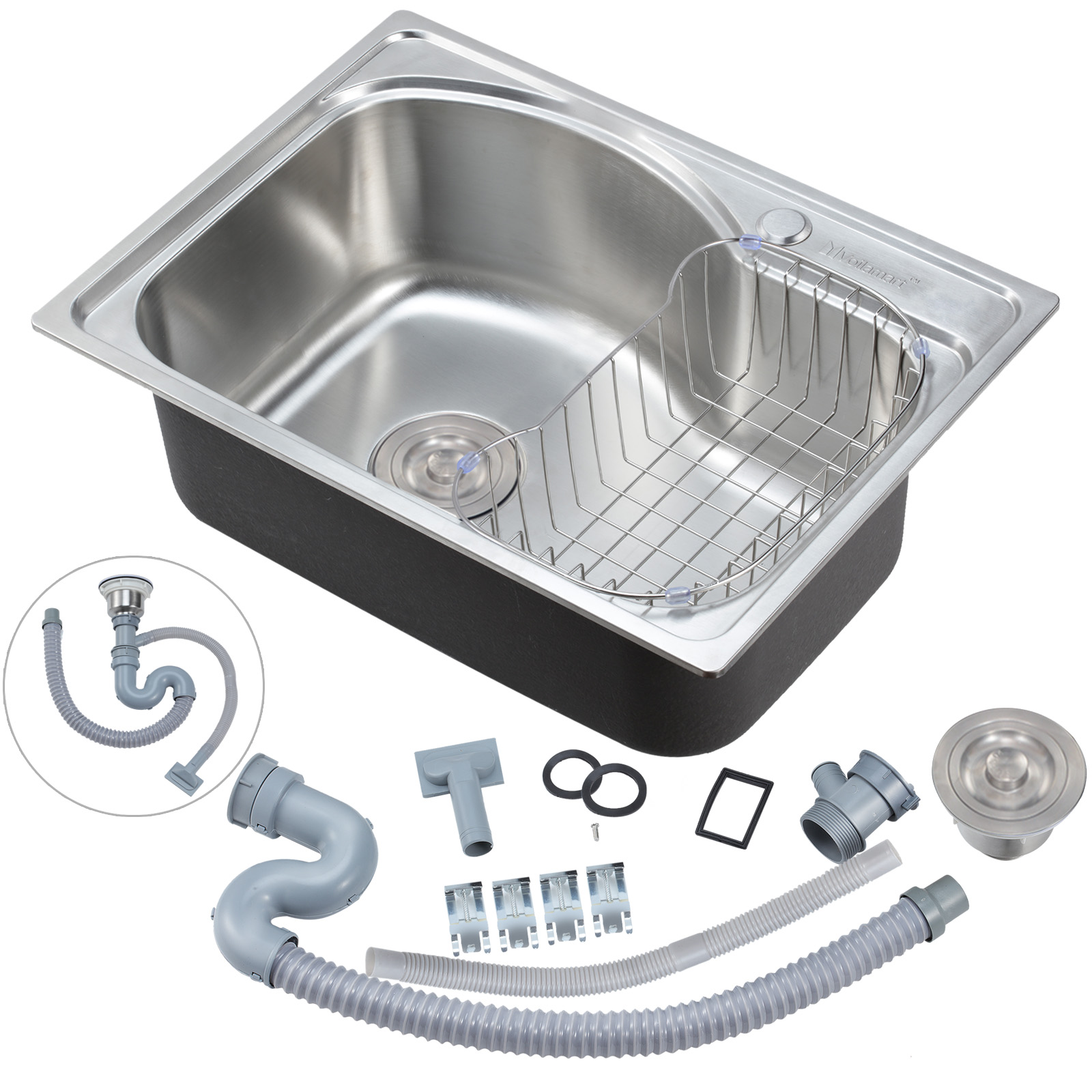 Voilamart Stainless Steel Kitchen Sink Single Bowl Inset Top Mount Waste Drainer