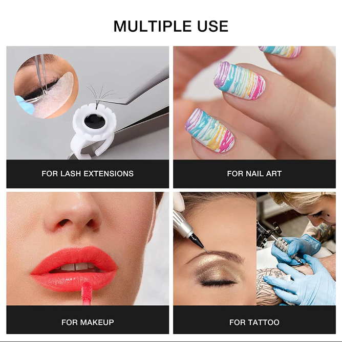 ✪MULTIPLE USE AND RICH SUPPLEMENT IN A BOX: This neat box is made of white PP non-toxic material, clean, and easy to store all 50pcs/100pcs of disposable glue cups in it. These lash glue rings can also serve for nail art, makeup, and even tattoo.