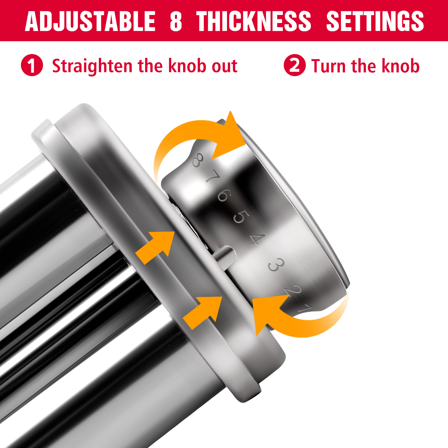 Commercial-style stainless steel pasta rollers for smooth rolling of pasta dough. It is very safe to use, just need to install it on the Kitchenaid stand mixer. NOTICE: Don't push any hard things in it.