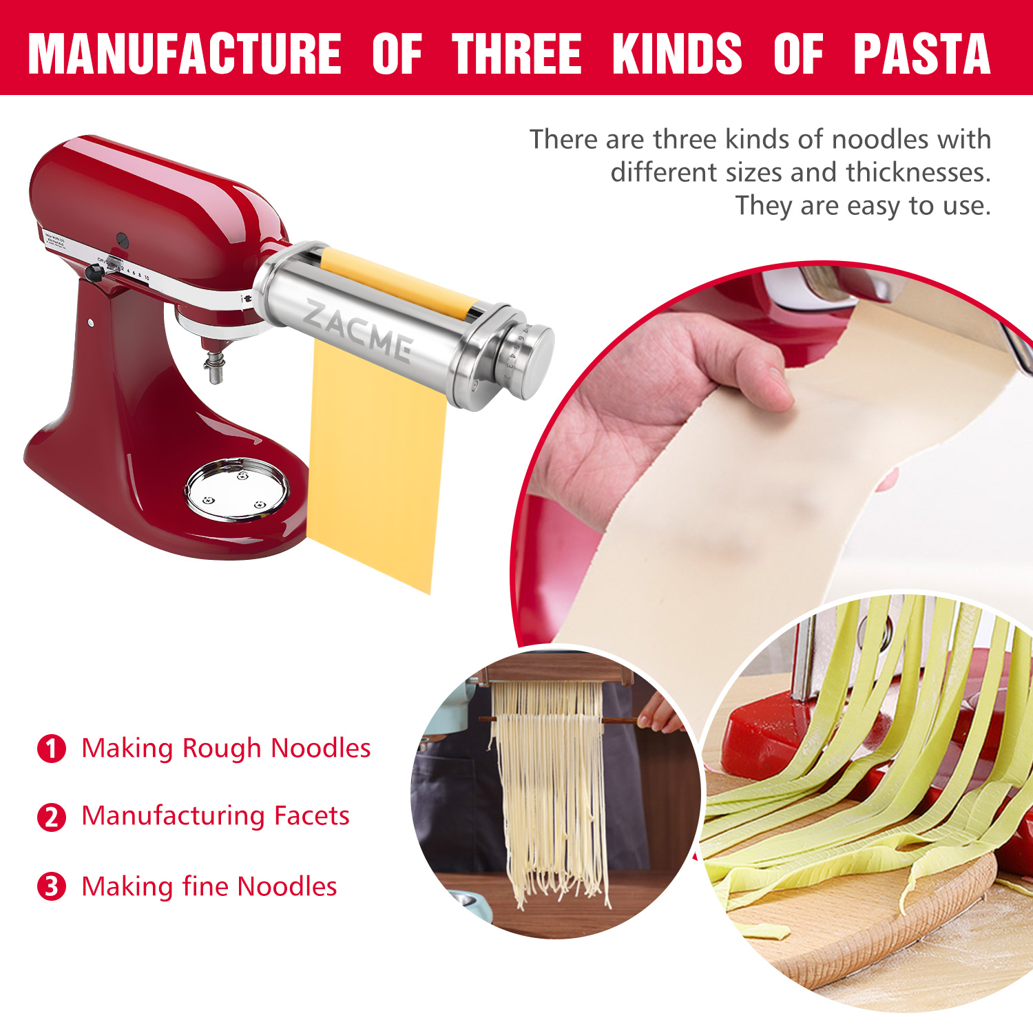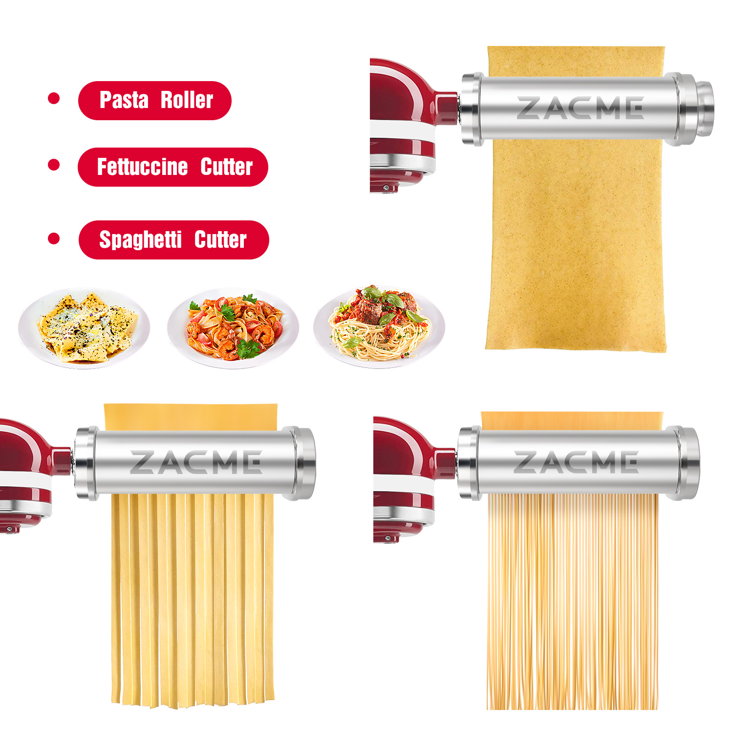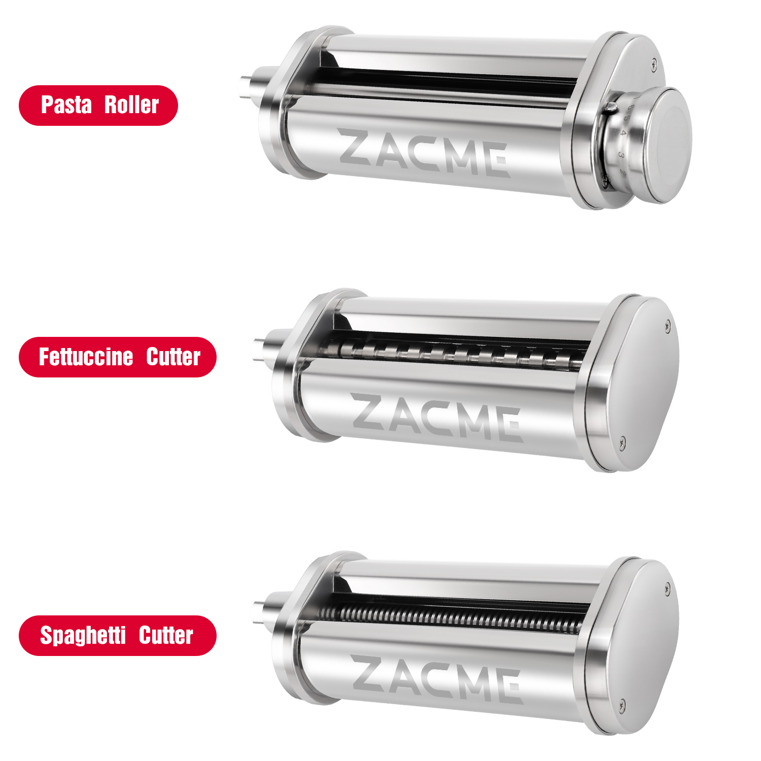 【Newly Designed】– ZACME Pasta Cutter Attachments Set is designed exclusively for use with all KitchenAid Stand Mixer. The appearance design of our pasta maker attachment has been updated. The ones on the market are still square models, and the appearance of ours has been upgraded to round. The new look is more aesthetically pleasing.