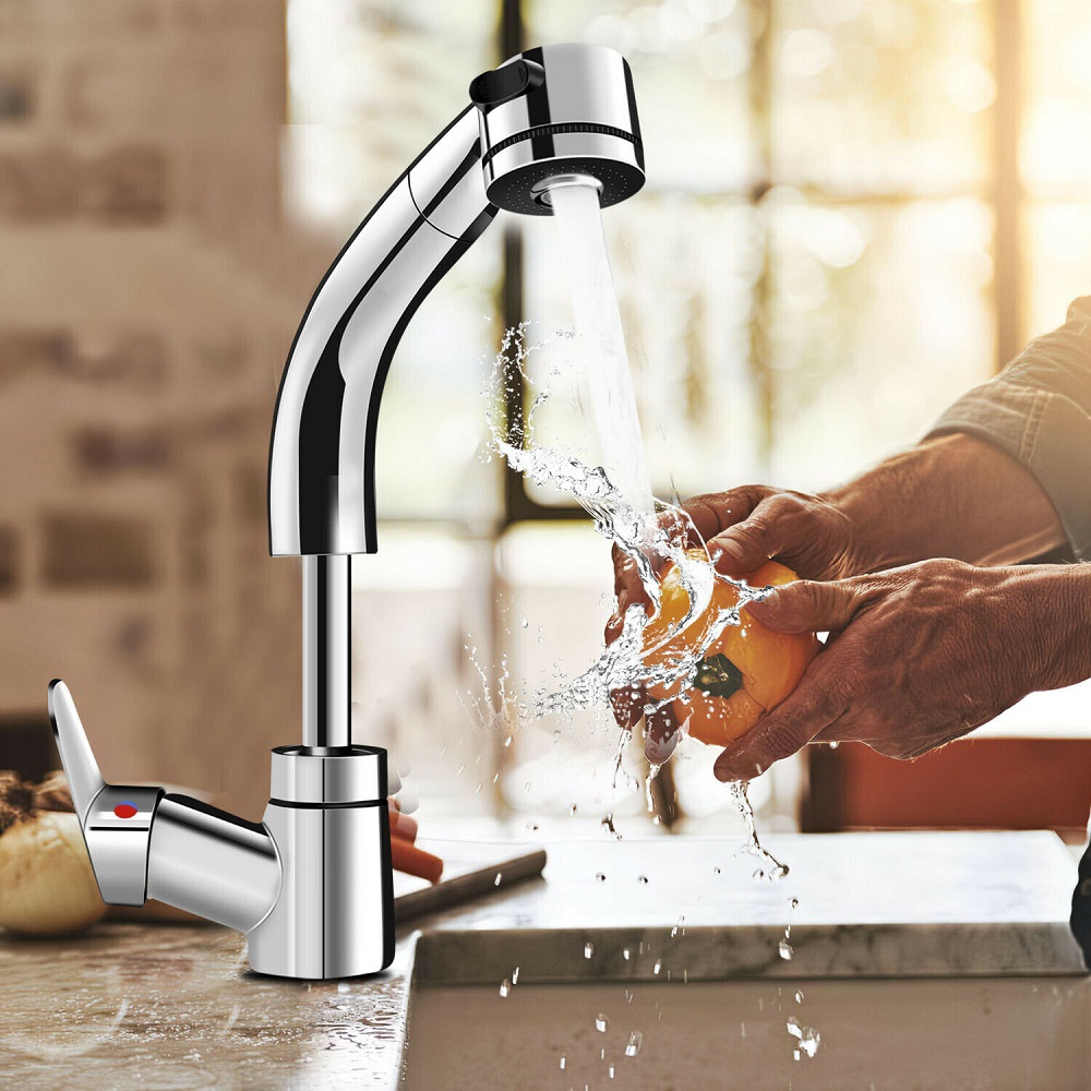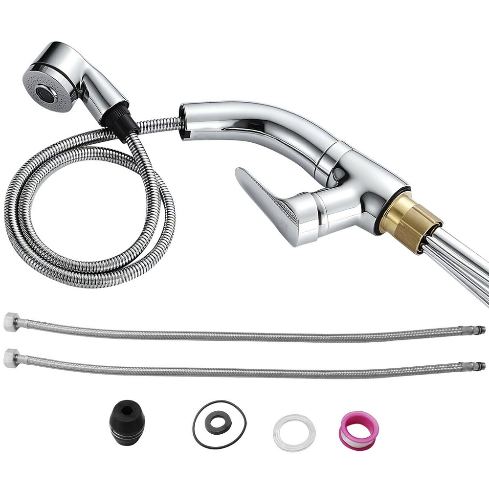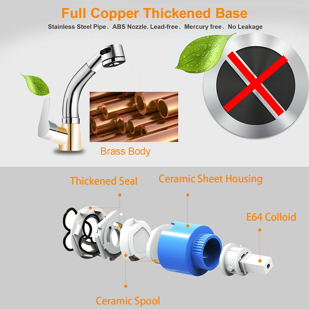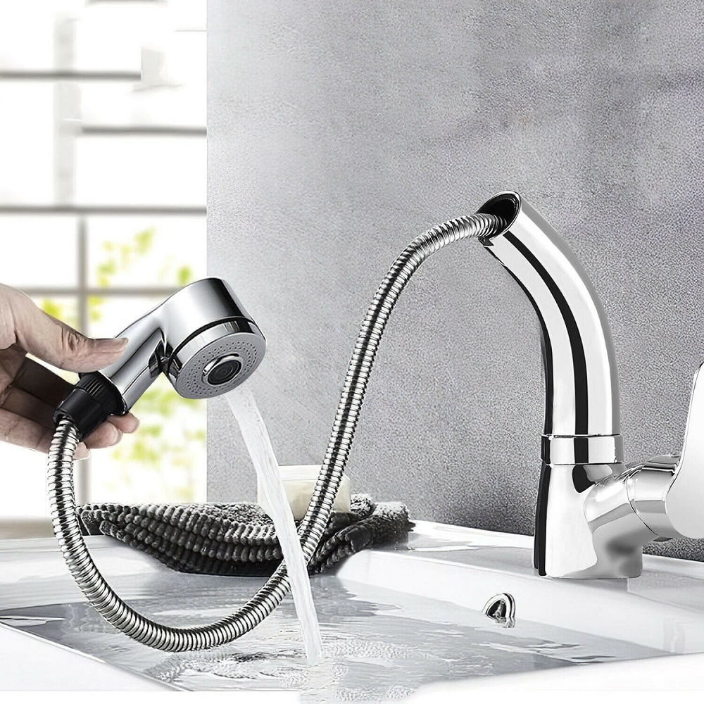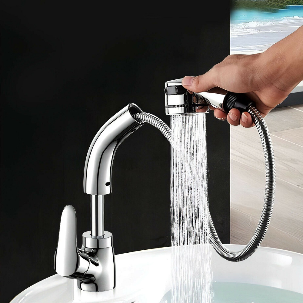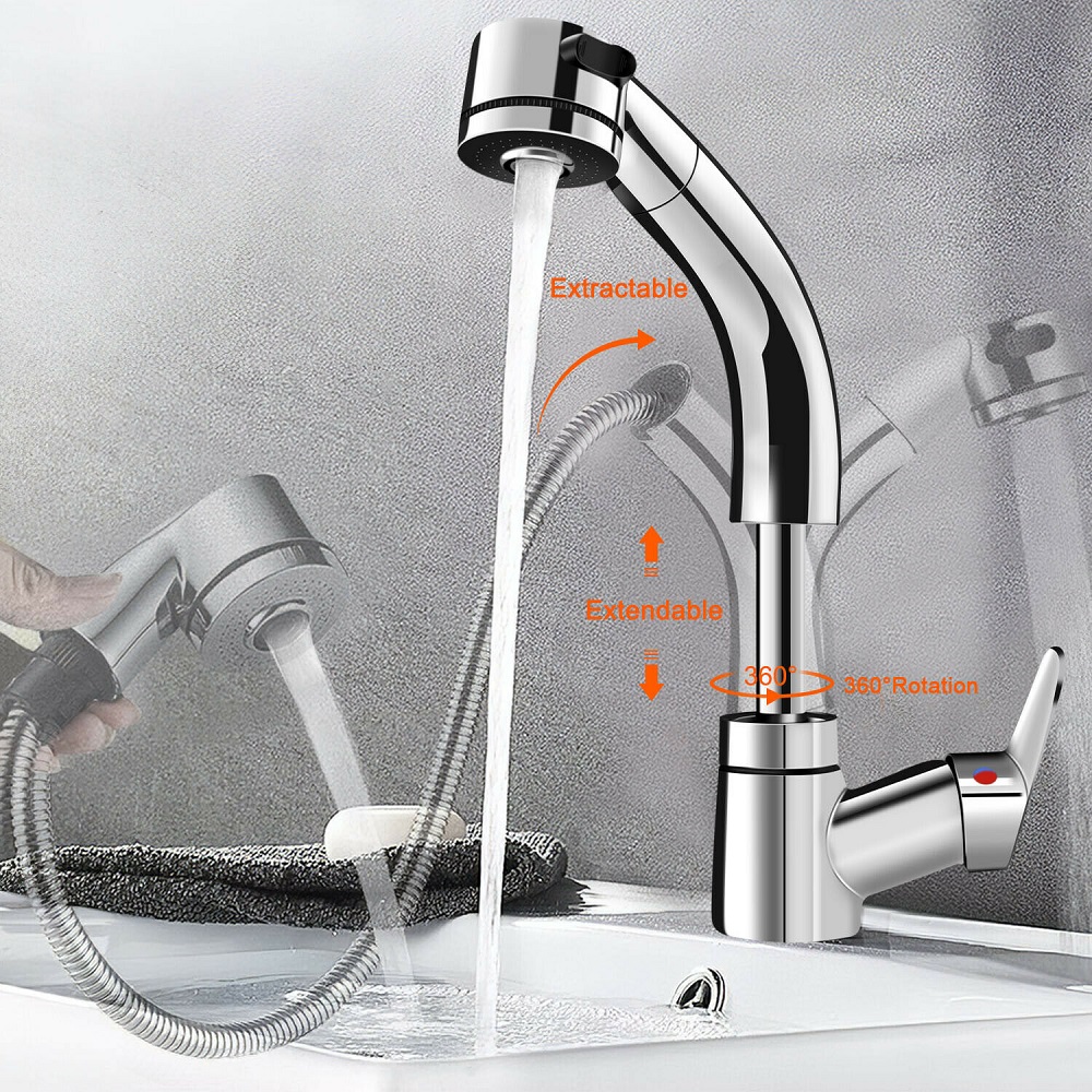 MODERN FAUCET -- Suitable for kitchen and bathroom, Equipped with lifting arm, easy-retract flexible hose with swivel adapter offers an extended range of motion, offers at your fingertips water delivery.
