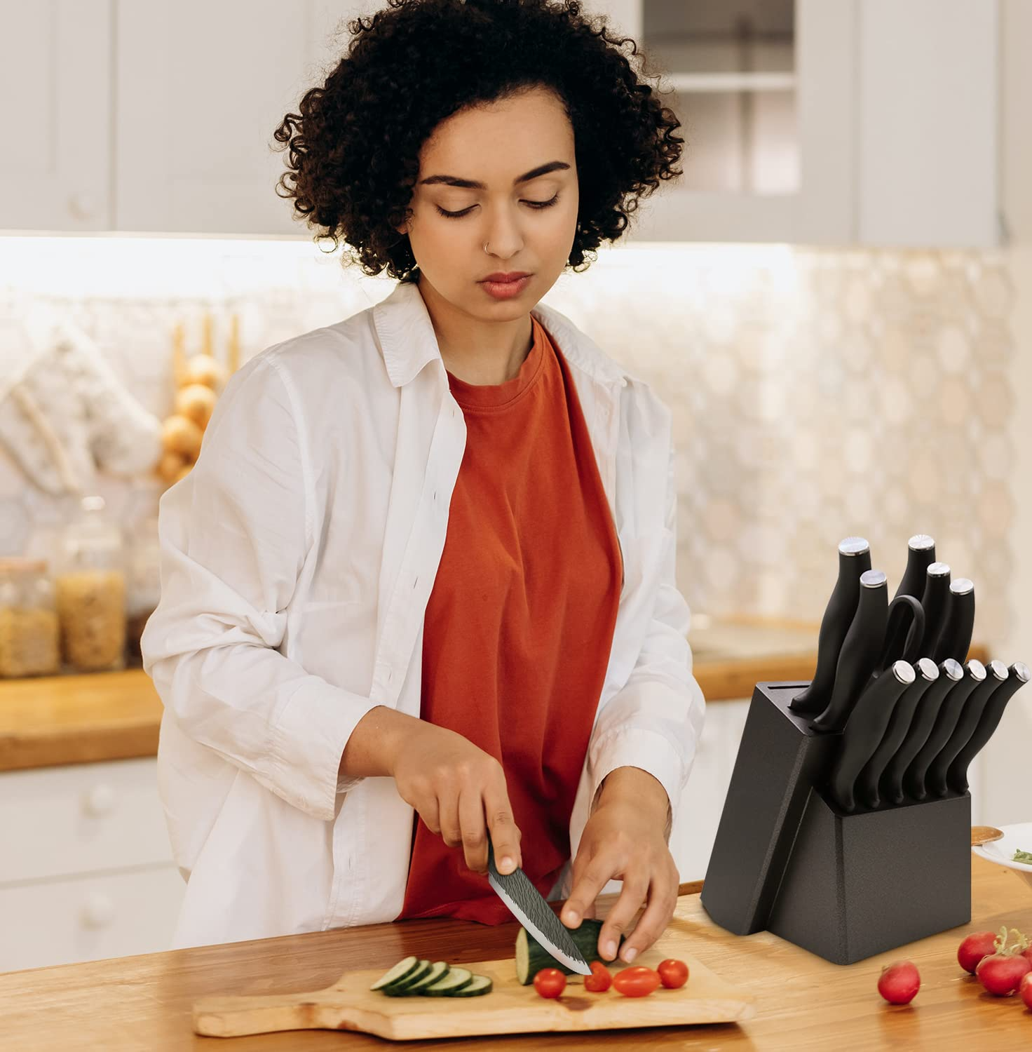 14 Pieces Kitchen Knife Set with Built-in Sharpener Block