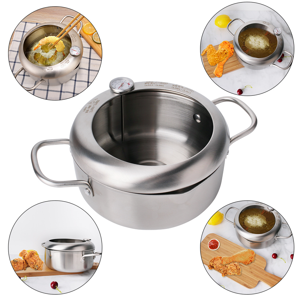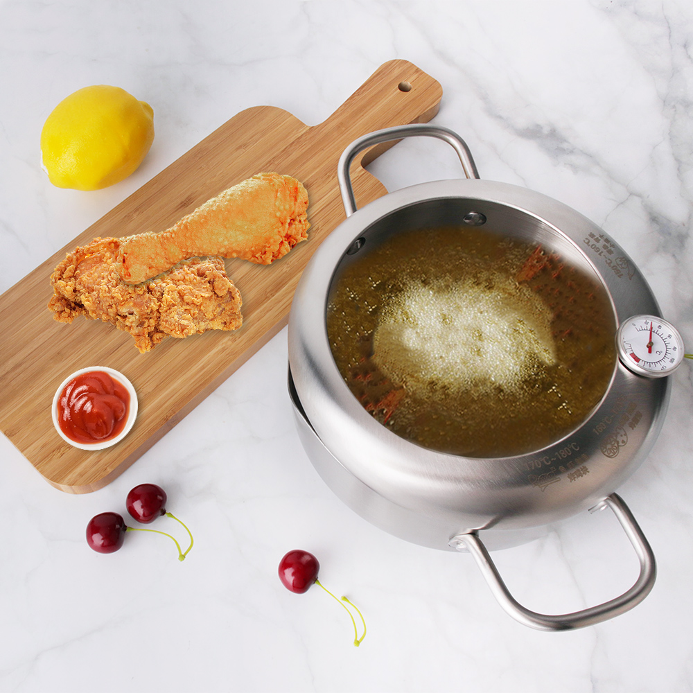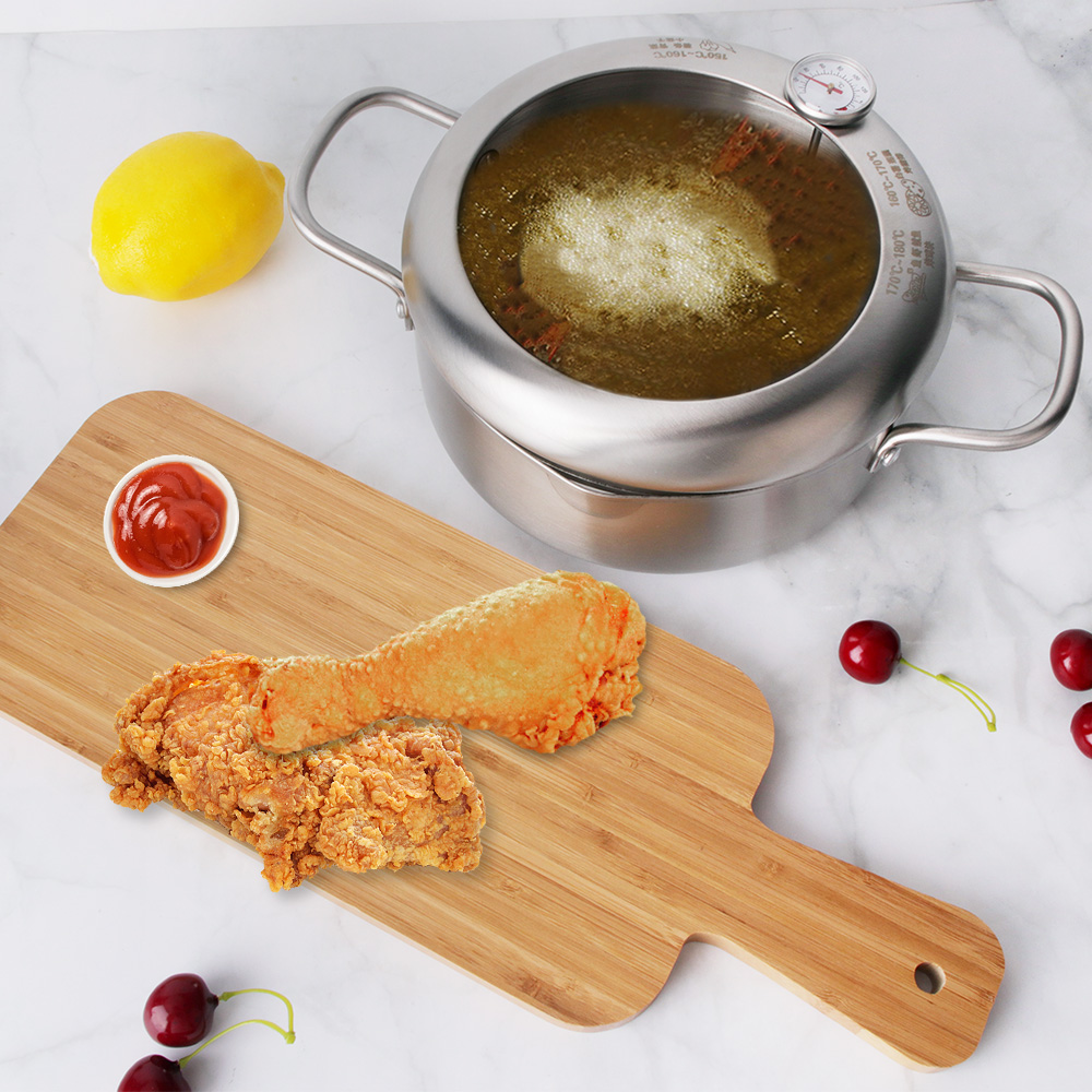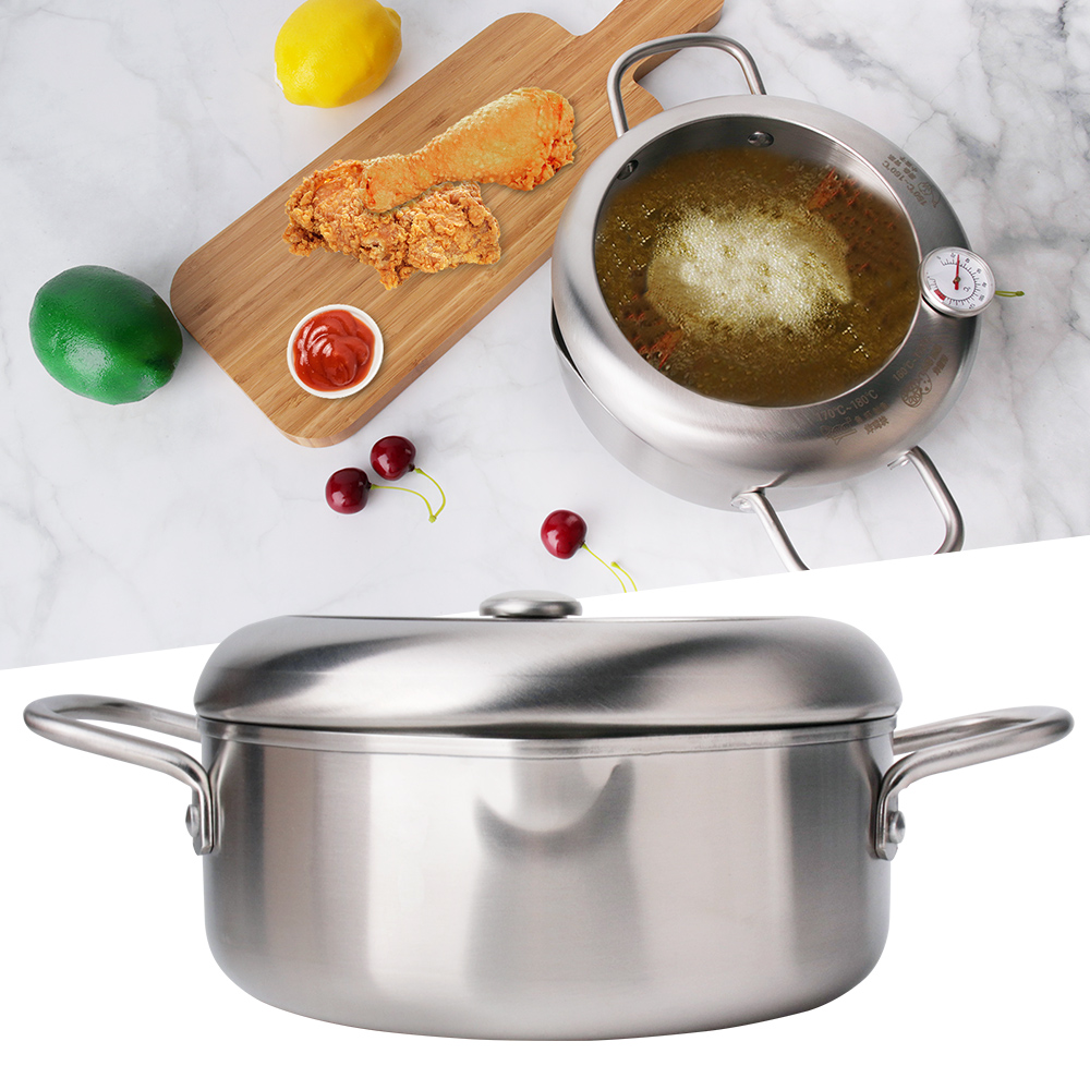 Stainless Steel Deep Frying Pot Fryer Pan Temperature Control Fried Chicken Tool