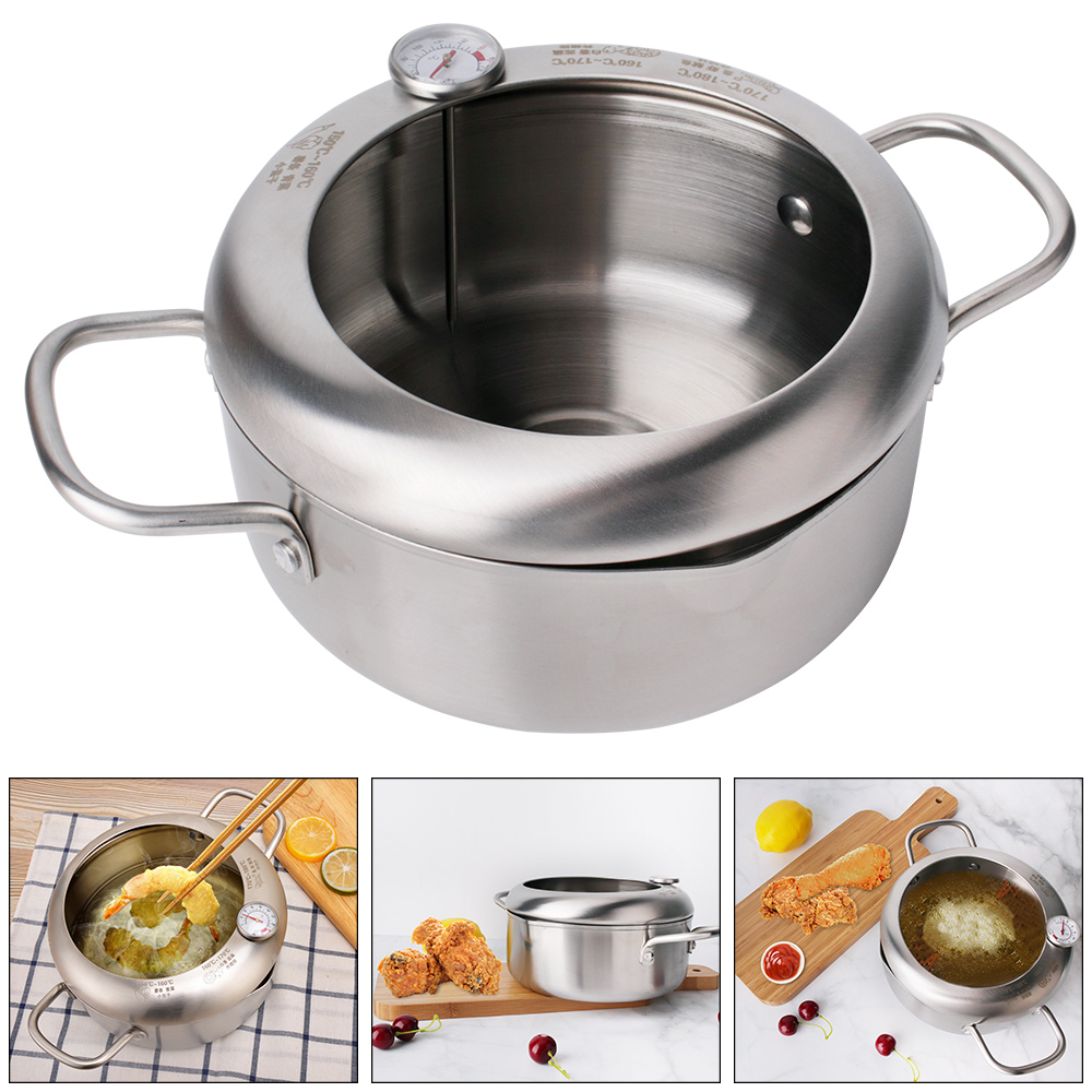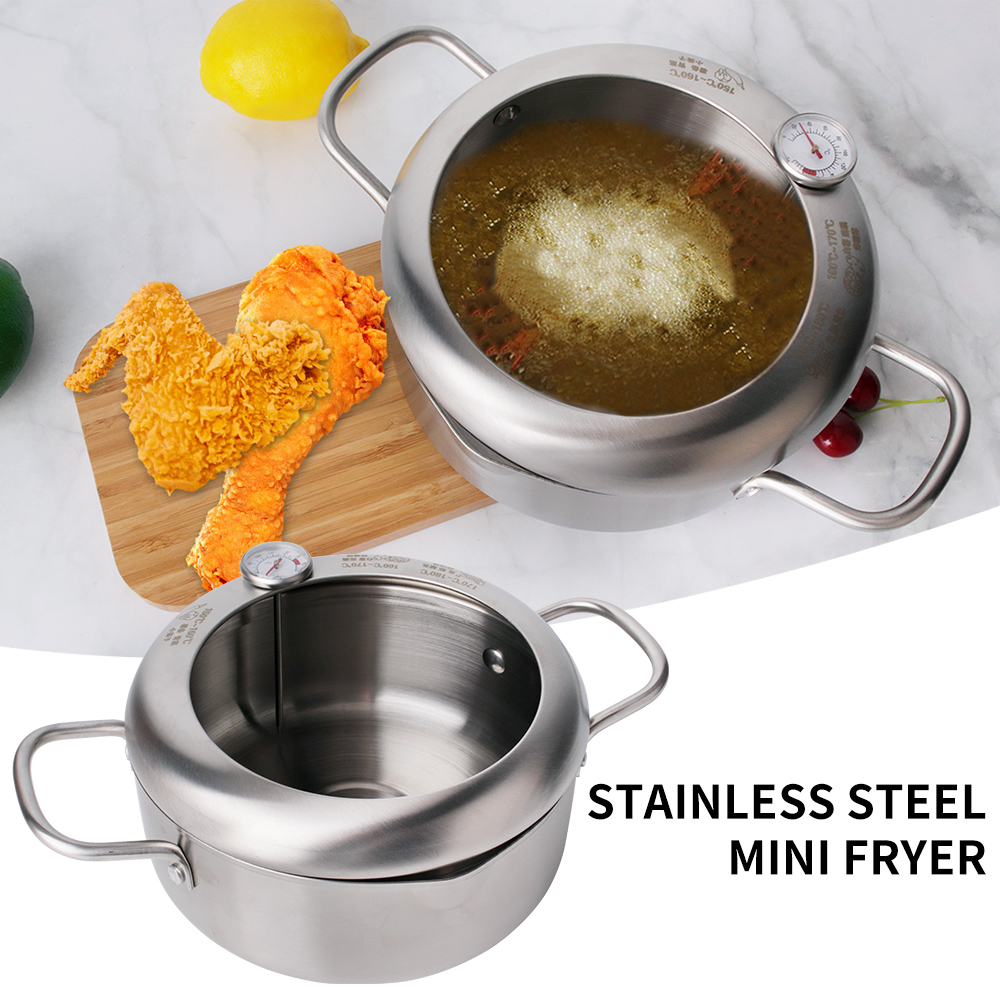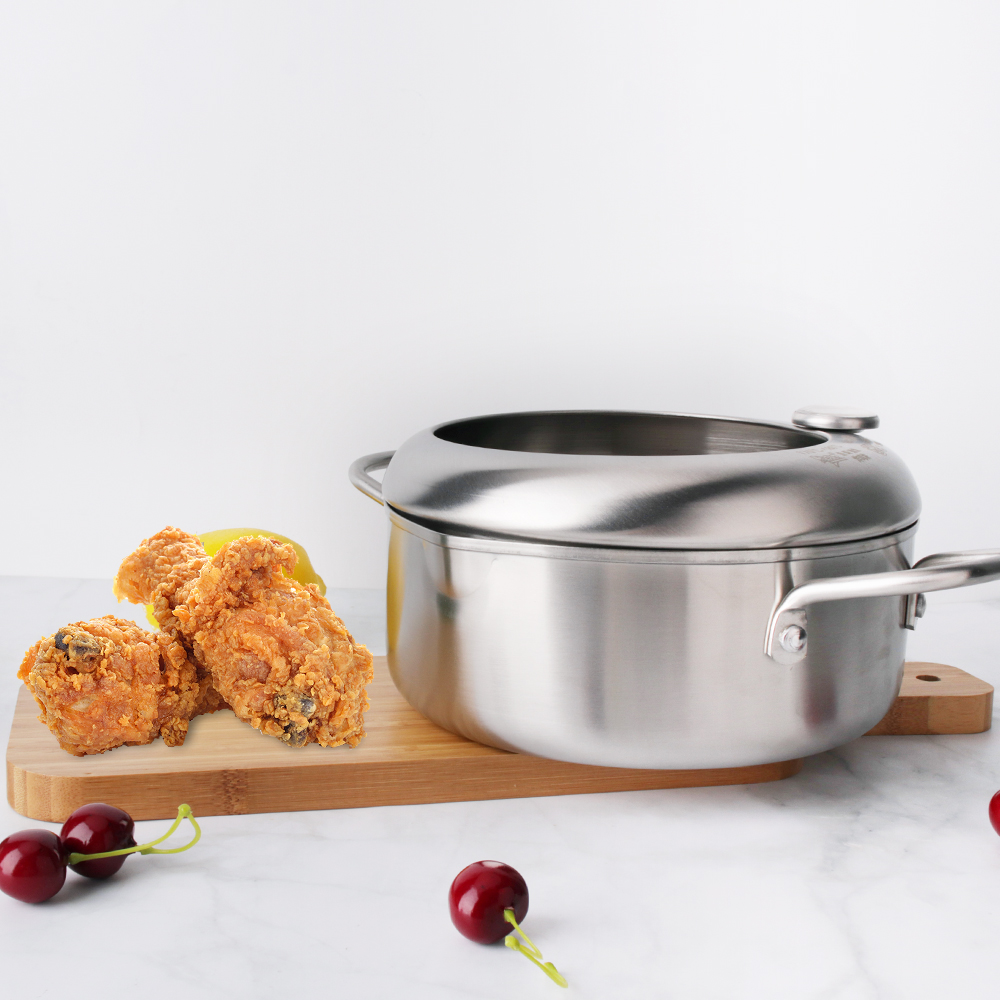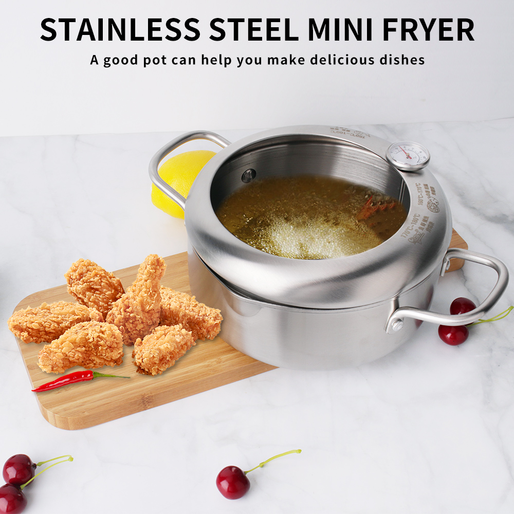Stainless Steel Deep Frying Pot Fryer Pan Temperature Control Fried Chicken Tool