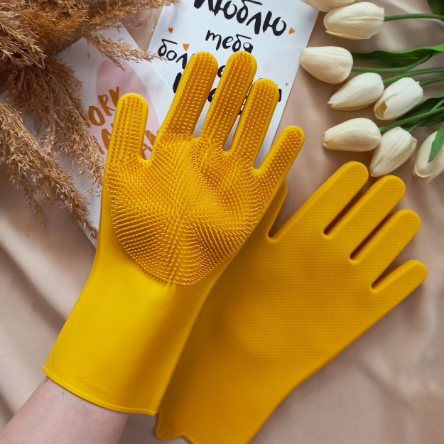 1 Pair Magic Scrubber Silicone Dishwashing Gloves For Home Cleaning