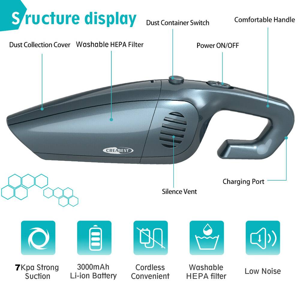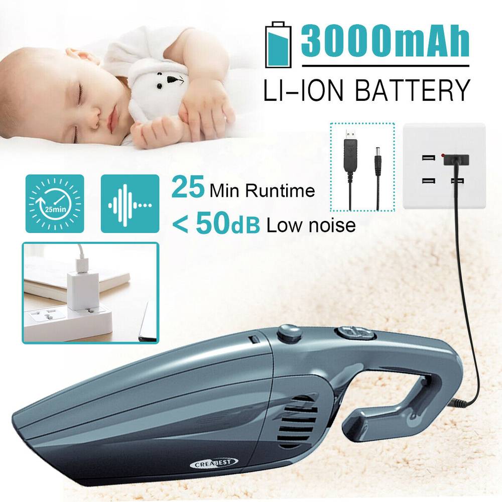 Cordless Design: the cordless is light and easy to carry, without power cord or adapter, you can use the hand-held Hoover in any room, car or caravan.