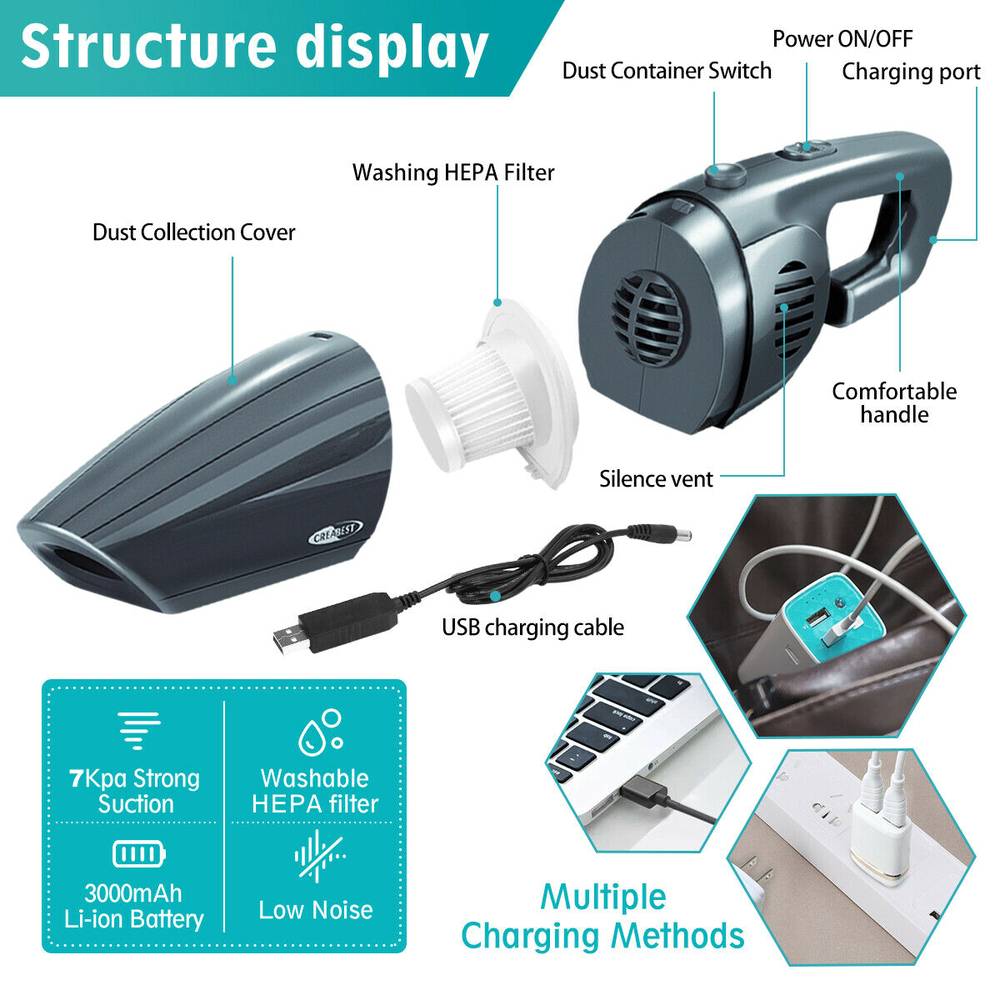 Multi Functional Accessories: the car vacuum cleaner is equipped with a variety of different accessories, increasing the versatility. fit for pet hair, home and car cleaning