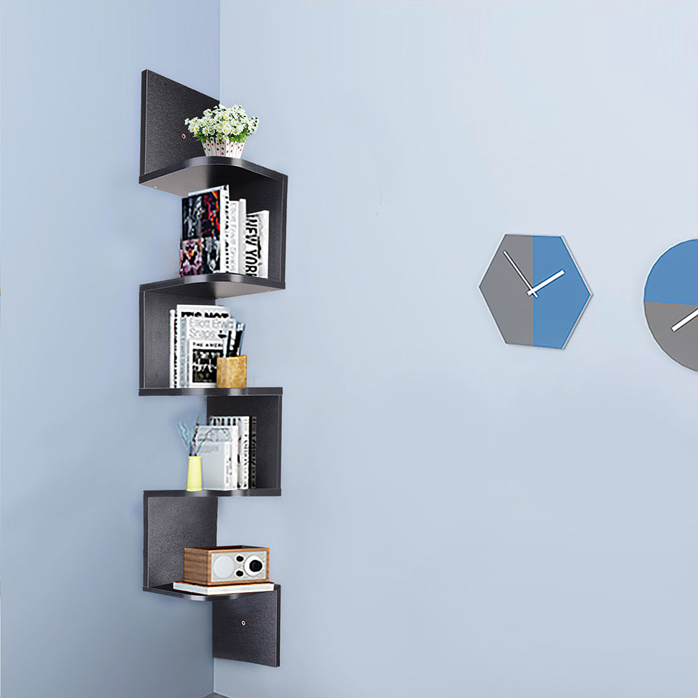 - Space Saving Design - ReaseJoy 5-Tier Zig Zag Wall Corner Shelf features simple design to show modern style for home decoration as well as keeping your things neat and organized while leaving you with more floor space and a larger feel to the room, ideal for bedroom, living room, closet, study and more home or office use