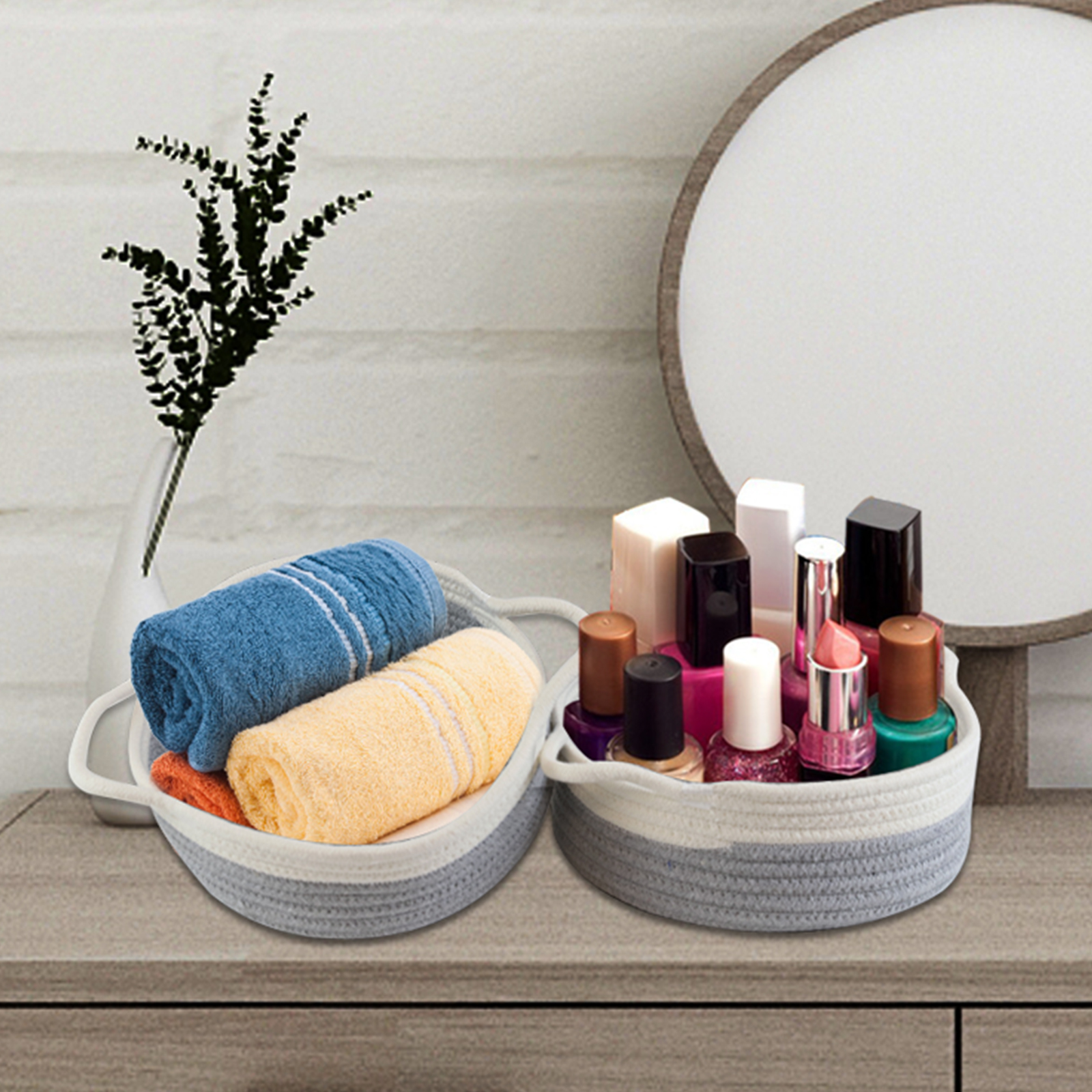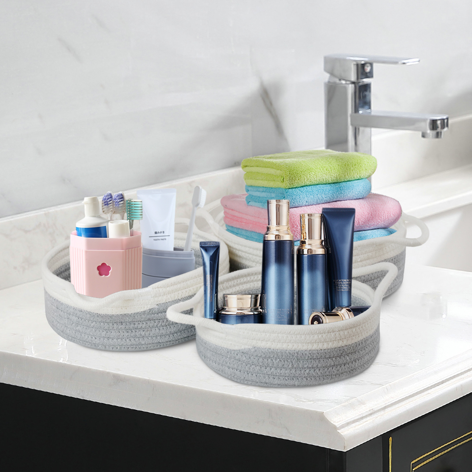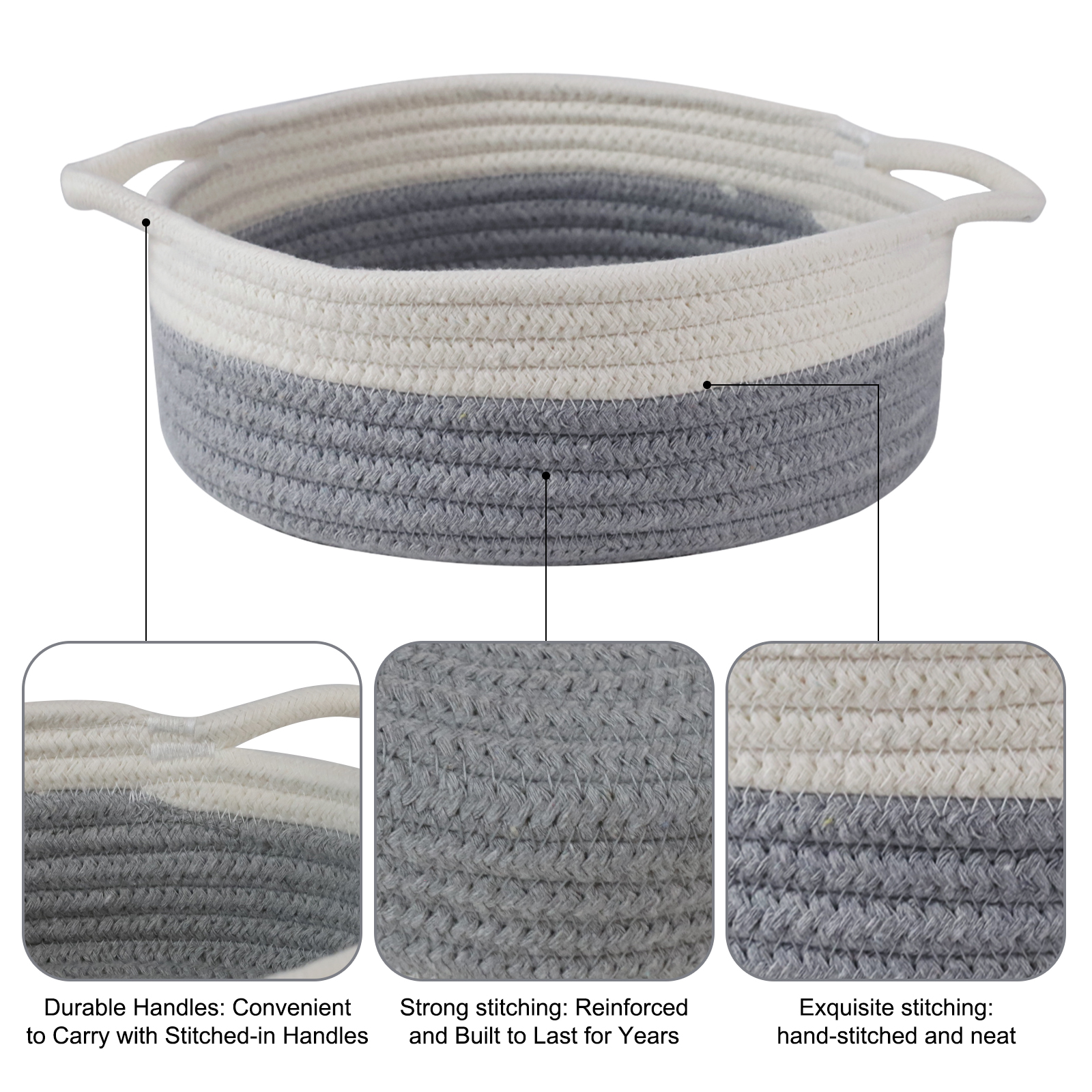 Voilamart Cotton Rope Basket Set of 5,Rope Basket with Handles,Woven Storage Basket,White and Gray Decorative Toy Baskets Setfor Baby Nursery toys, Remote, Controls, Phone, Stationary, Makeup