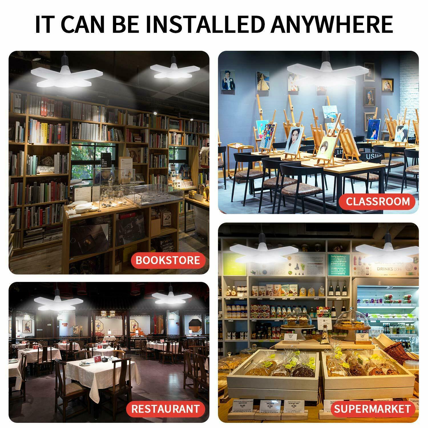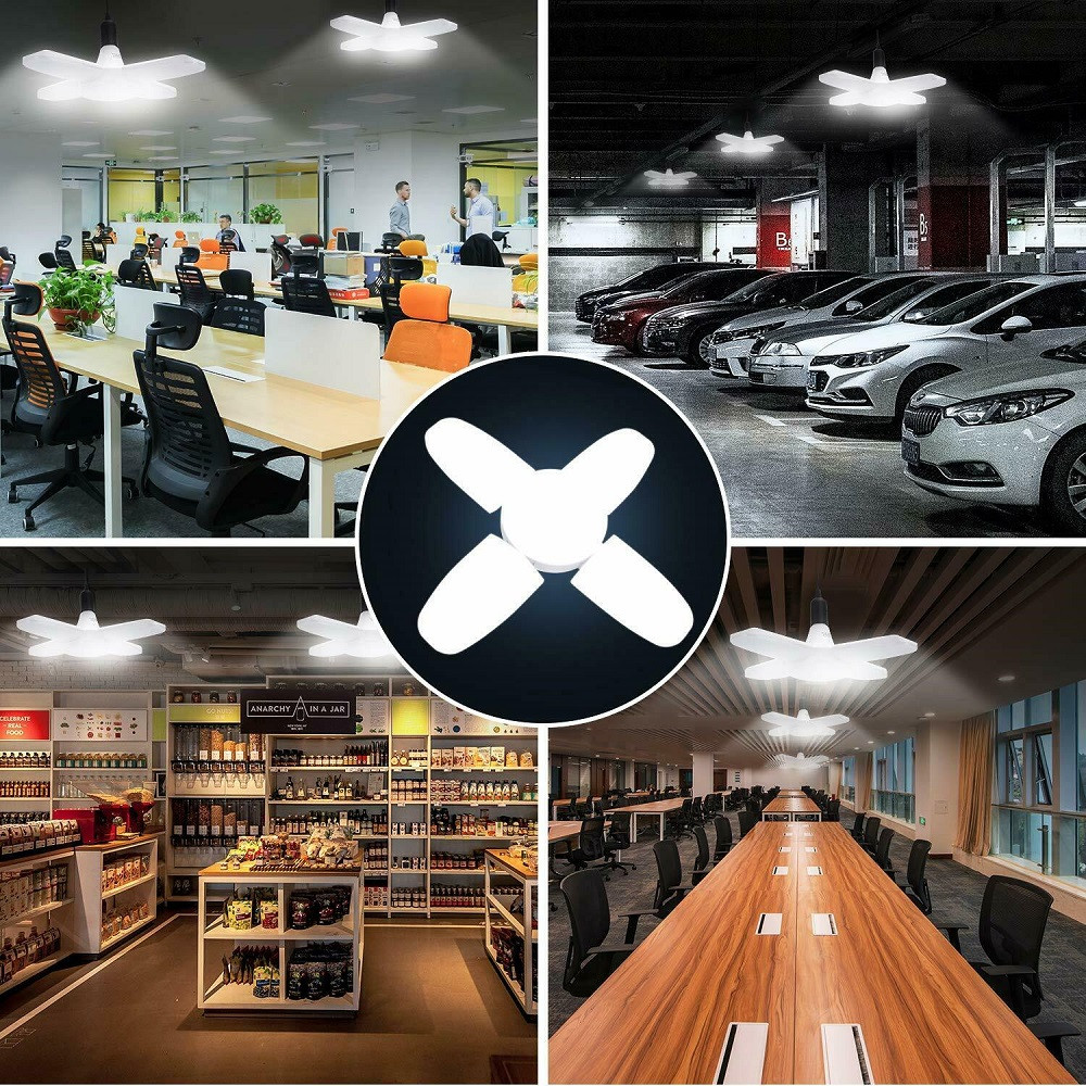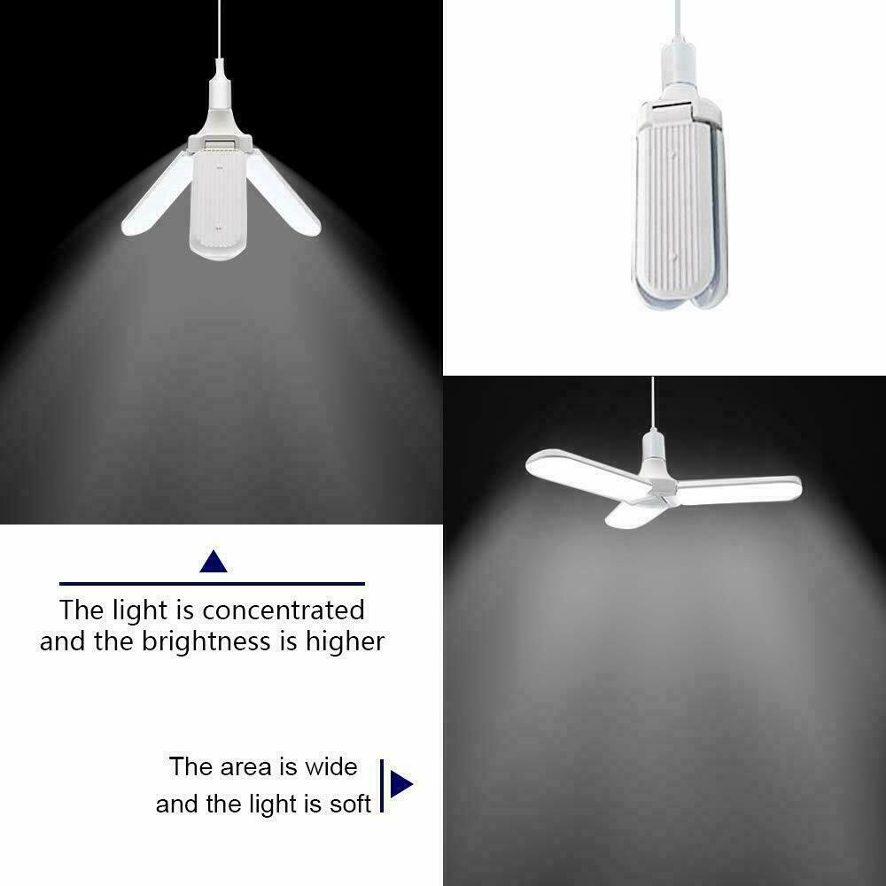 【Super Bright LED Garage Light】It features LED technology with top quality diodes that total 4500 lumens, CRI80+, 45W/60W, 6500K daylight for your garage, providing the best indoor lighting experience. With 3/4 ultra-bright adjustable LED heads for your convenience to adjust the angle of light to focus the area you work.