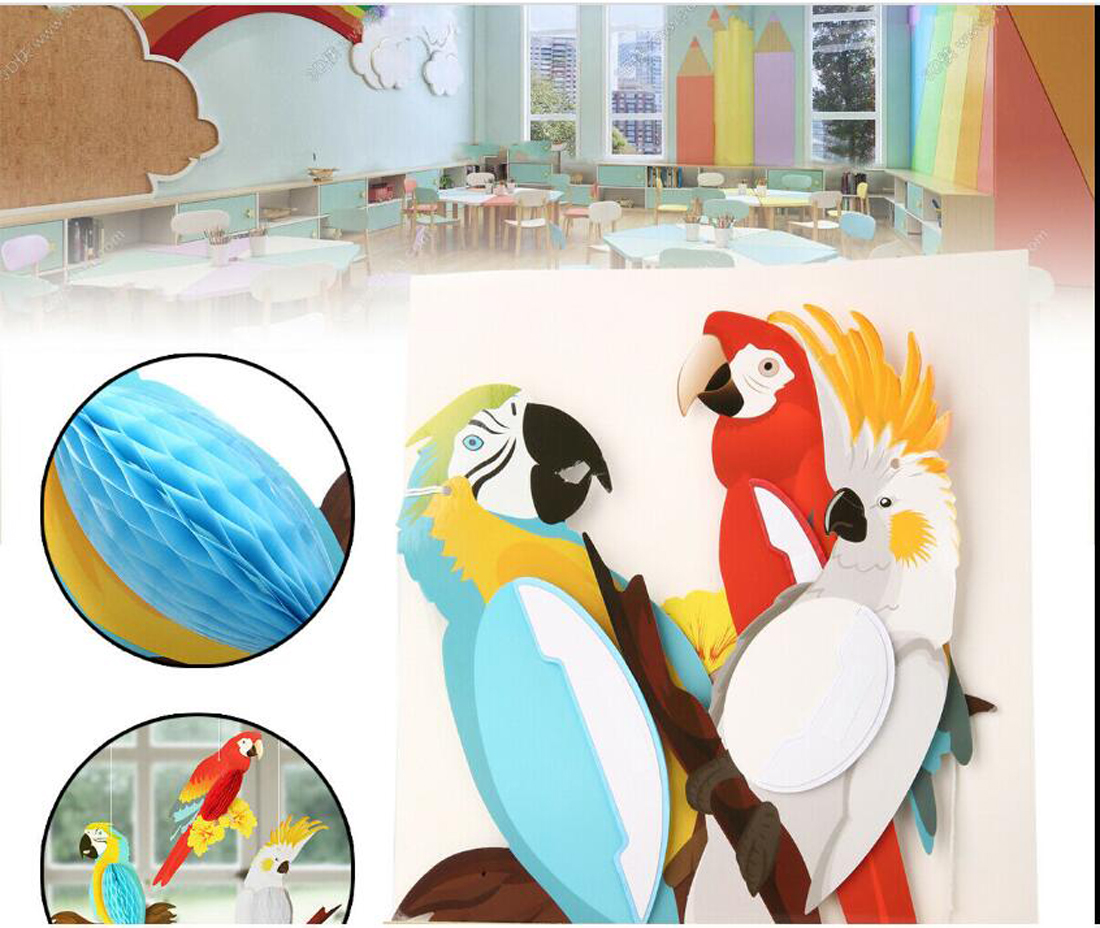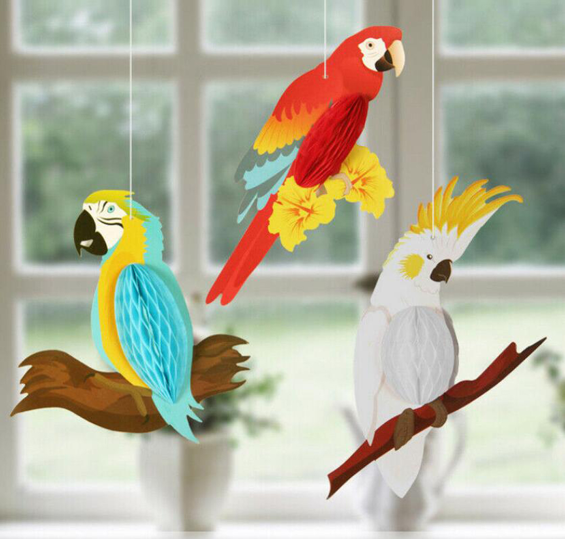 Easy to Assemble : Each color paper parrot is tied with a white rope and easy to hang up on the wall/ceiling/window/tree branches/door/tent and also can be as table decorations.